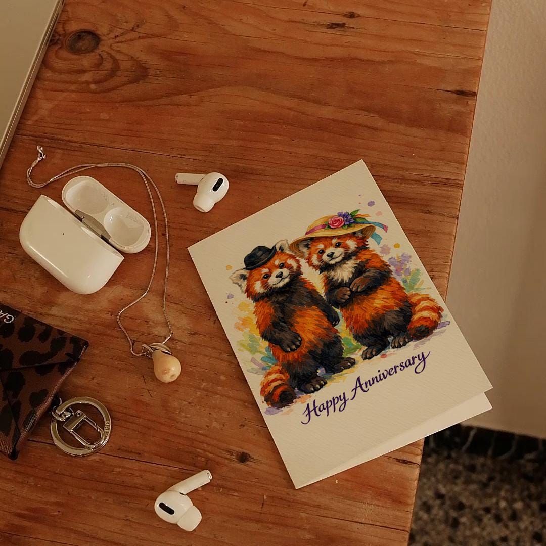 BLANK INTERIOR FOR A PERSONAL TOUCH: Our Animal Hugs Collection - Two Red Pandas: Sweet and Red-y for Love - Happy Anniversary card and other whimsical designs feature a blank interior, giving you ample space to write a personal message from the heart. Perfect for any occasion, each card comes with a matching white envelope, making it easy to send your unique sentiments to loved ones.