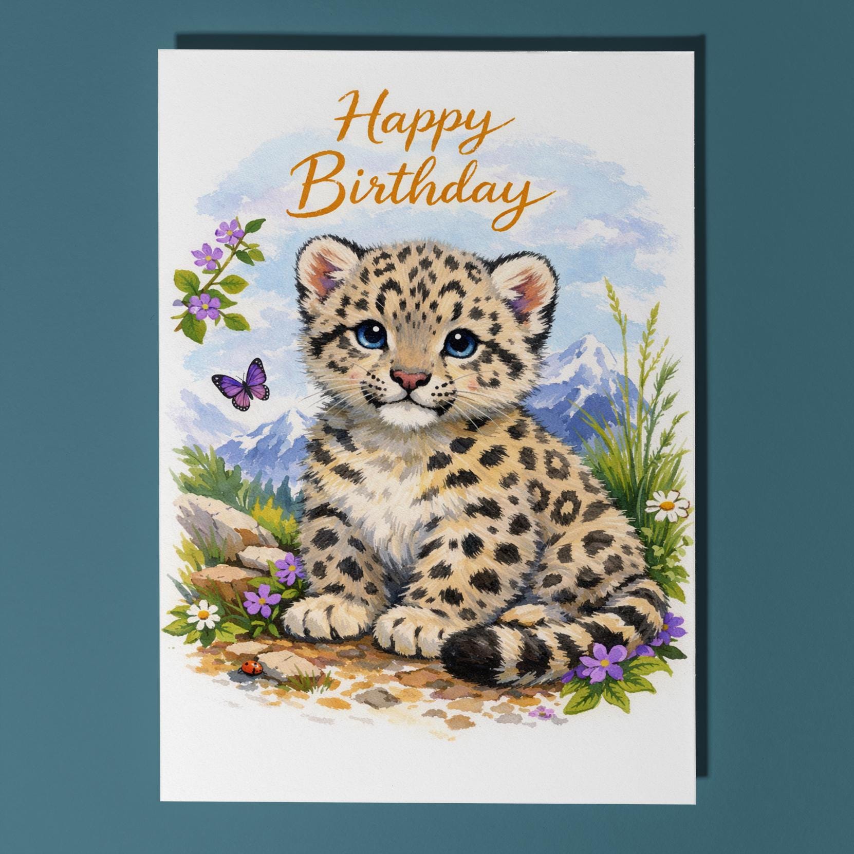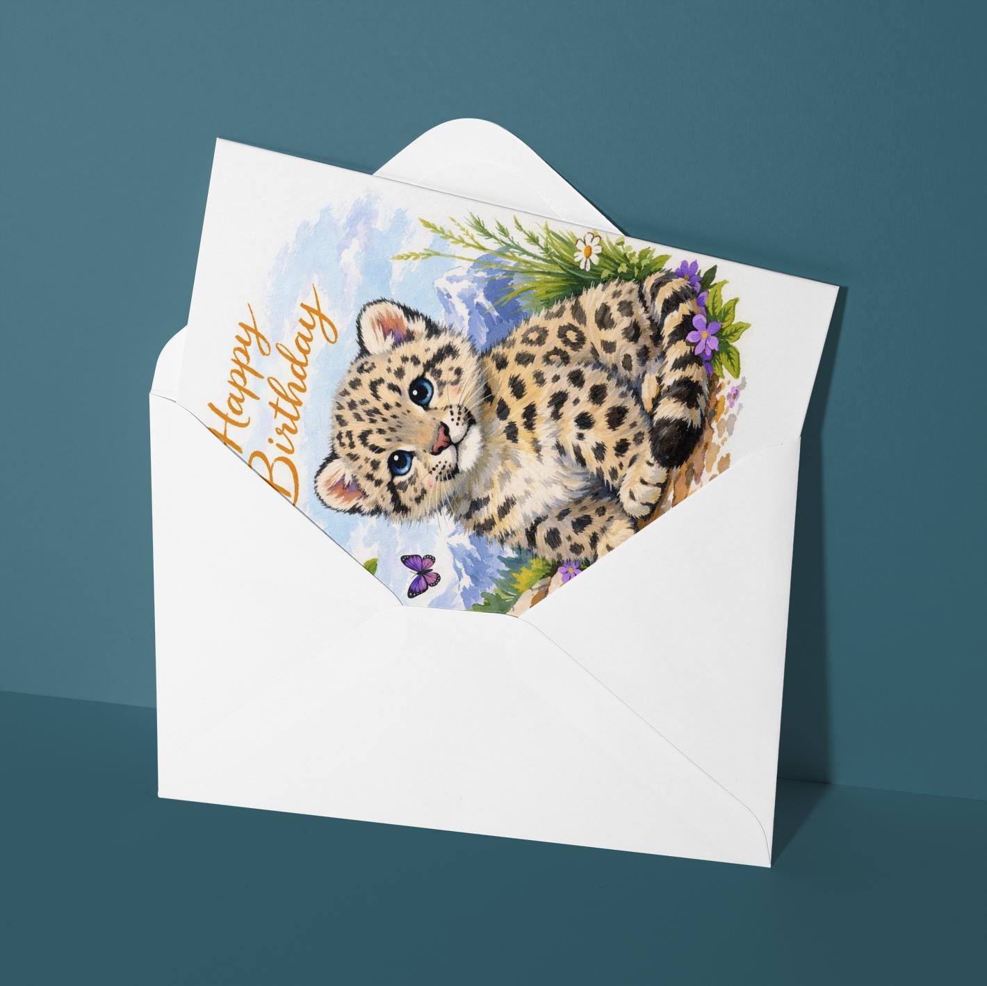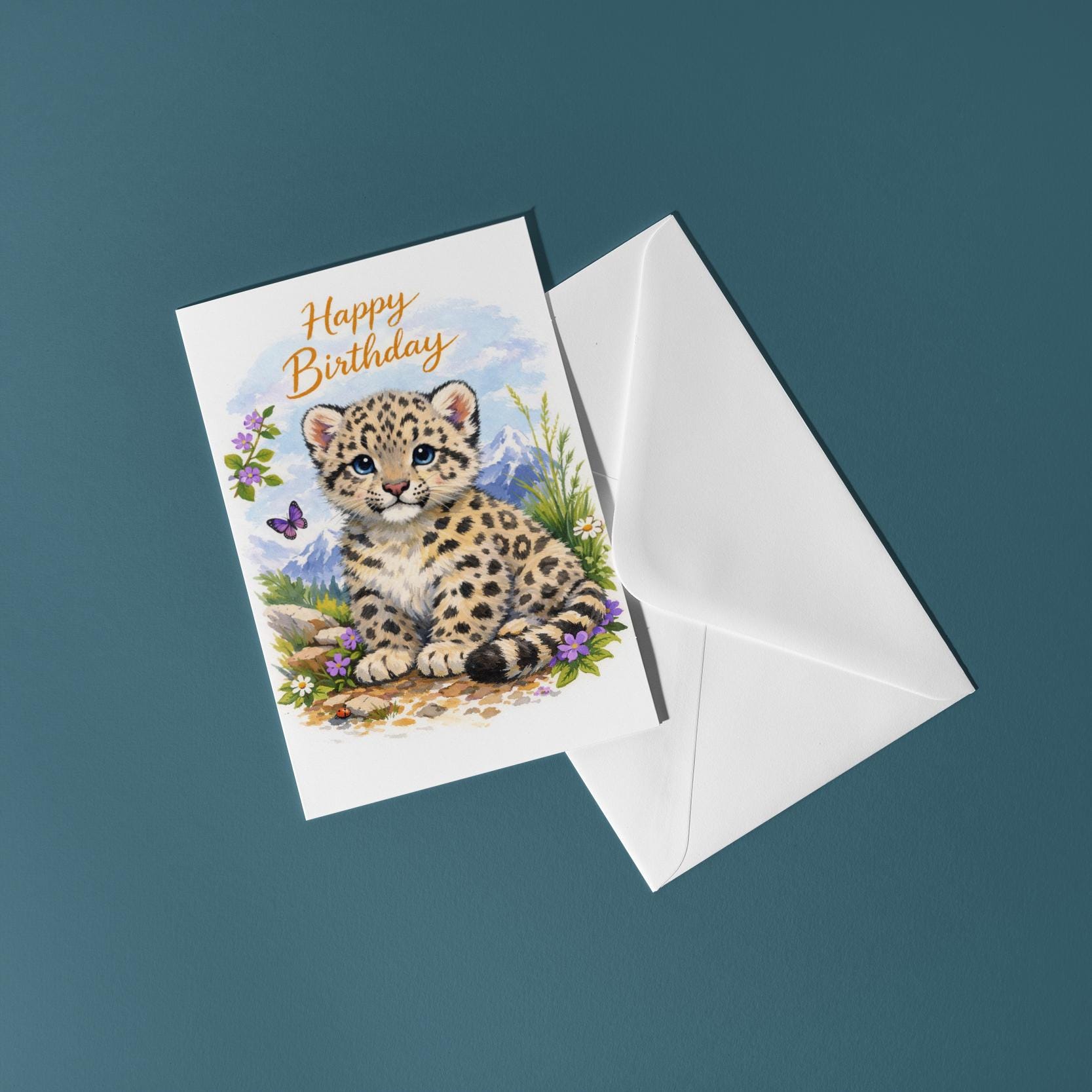 BLANK INTERIOR FOR A PERSONAL TOUCH: Our Wild Cats Party Collection - Snow Leopard Cub: Alpine Air - Happy Birthday! card and other whimsical designs feature a blank interior, giving you ample space to write a personal message from the heart. Perfect for any occasion, each card comes with a matching white envelope, making it easy to send your unique sentiments to loved ones.