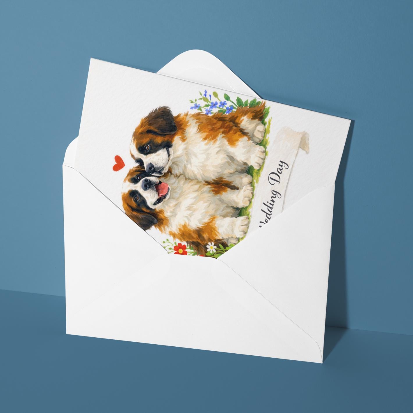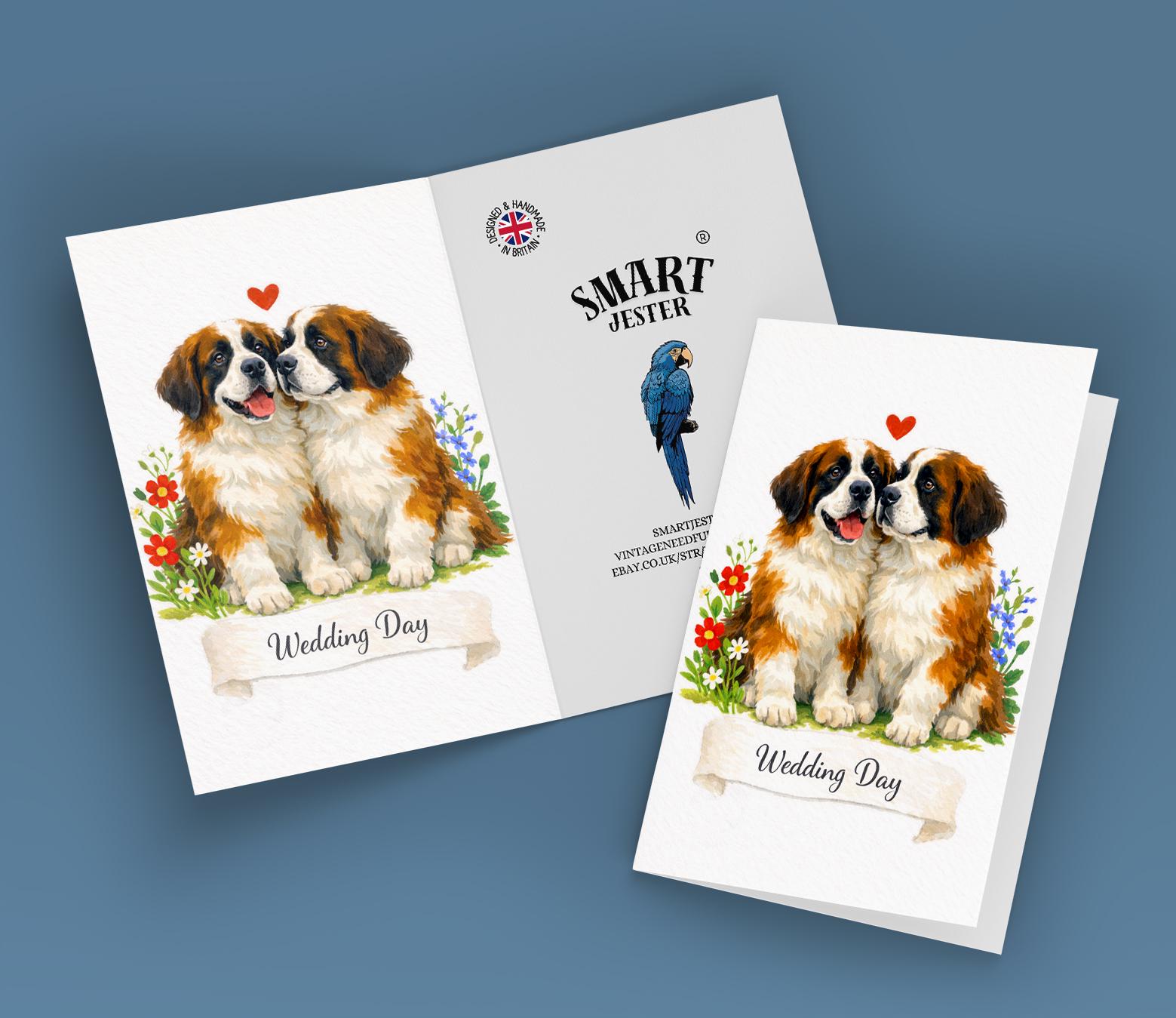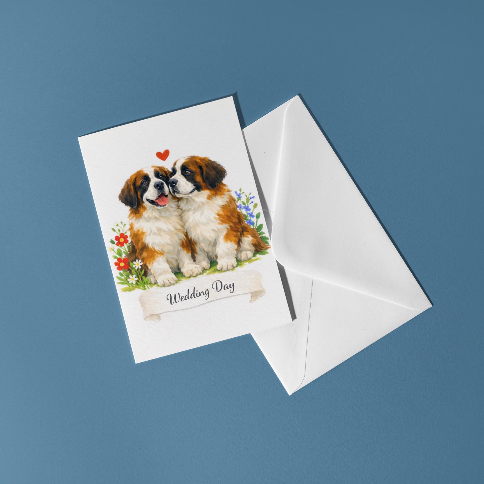 BLANK INTERIOR FOR A PERSONAL TOUCH: Our Dog Breeds Collection - Wedding Edition - Saint Bernards: Eternal Companions dogs Duo - Happy Wedding Day Card and other whimsical designs feature a blank interior, giving you ample space to write a personal message from the heart. Perfect for any occasion, each card comes with a matching white envelope, making it easy to send your unique sentiments to loved ones.