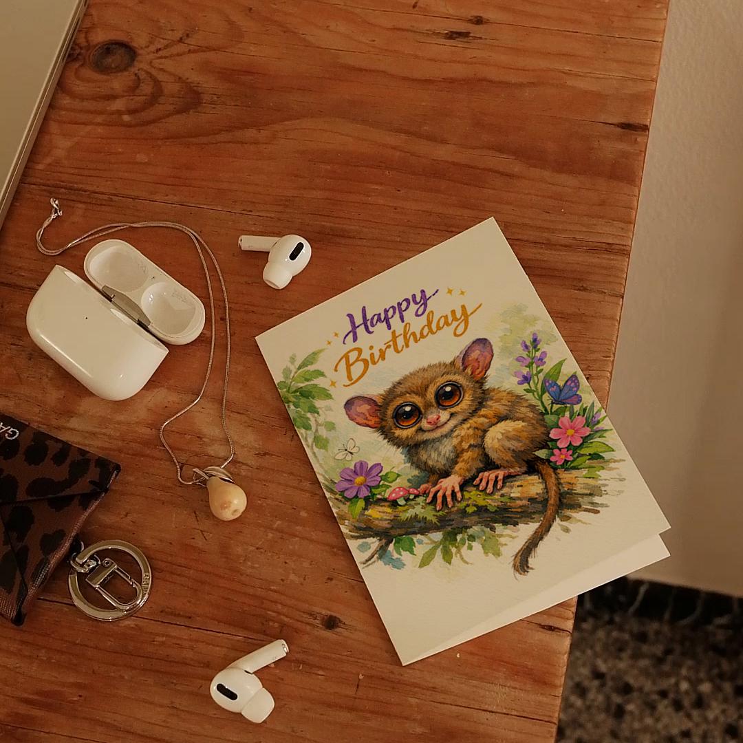 BLANK INTERIOR FOR A PERSONAL TOUCH: Our Animal Hugs Series – The Tarsier Gaze Happy Birthday! card - and other whimsical designs feature a blank interior, giving you ample space to write a personal message from the heart. Perfect for any occasion, each card comes with a matching white envelope, making it easy to send your unique sentiments to loved ones.