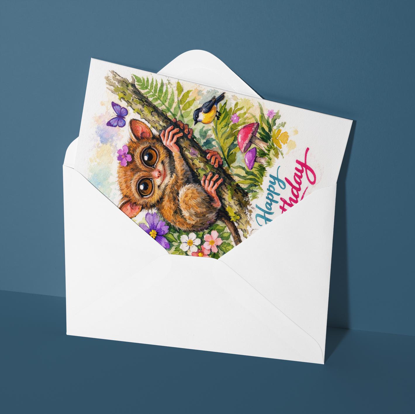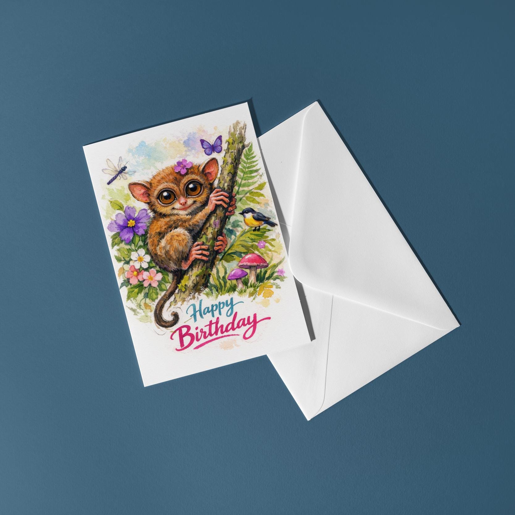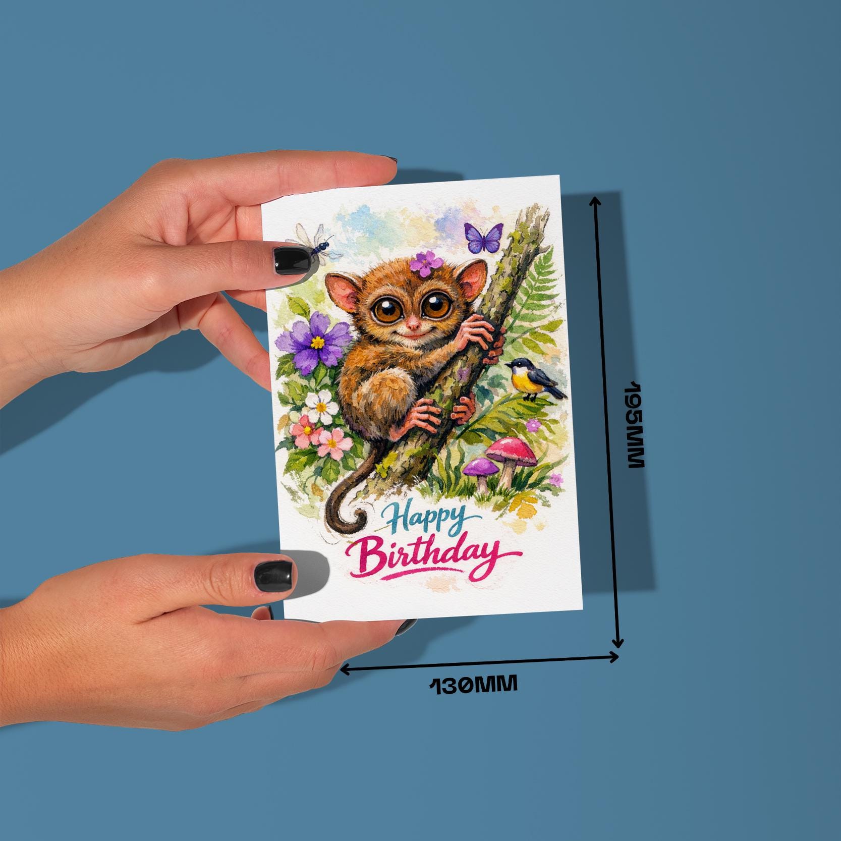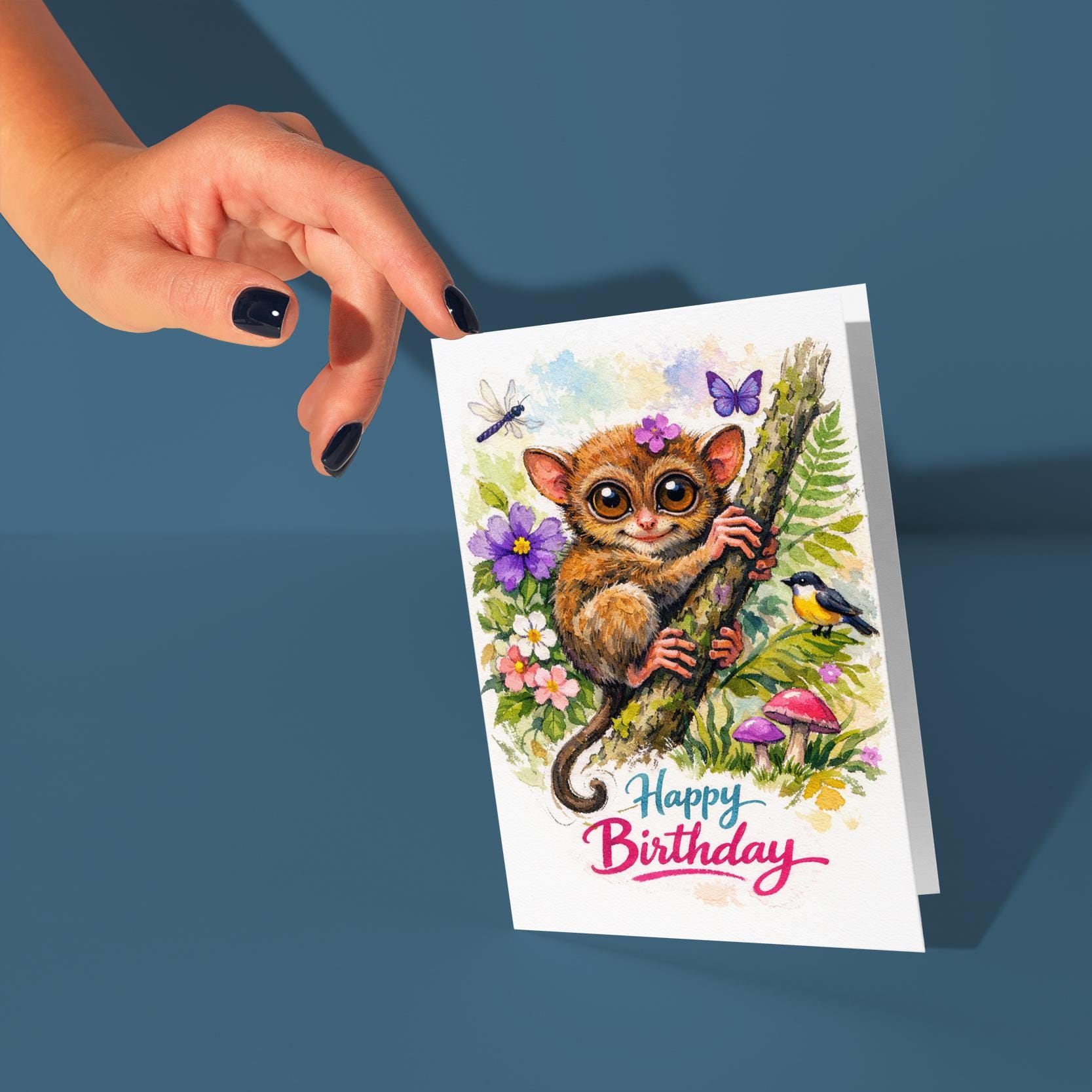 BLANK INTERIOR FOR A PERSONAL TOUCH: Our Animal Hugs Series – Tarsier: Spreading joy and magic Happy Birthday! card - and other whimsical designs feature a blank interior, giving you ample space to write a personal message from the heart. Perfect for any occasion, each card comes with a matching white envelope, making it easy to send your unique sentiments to loved ones.