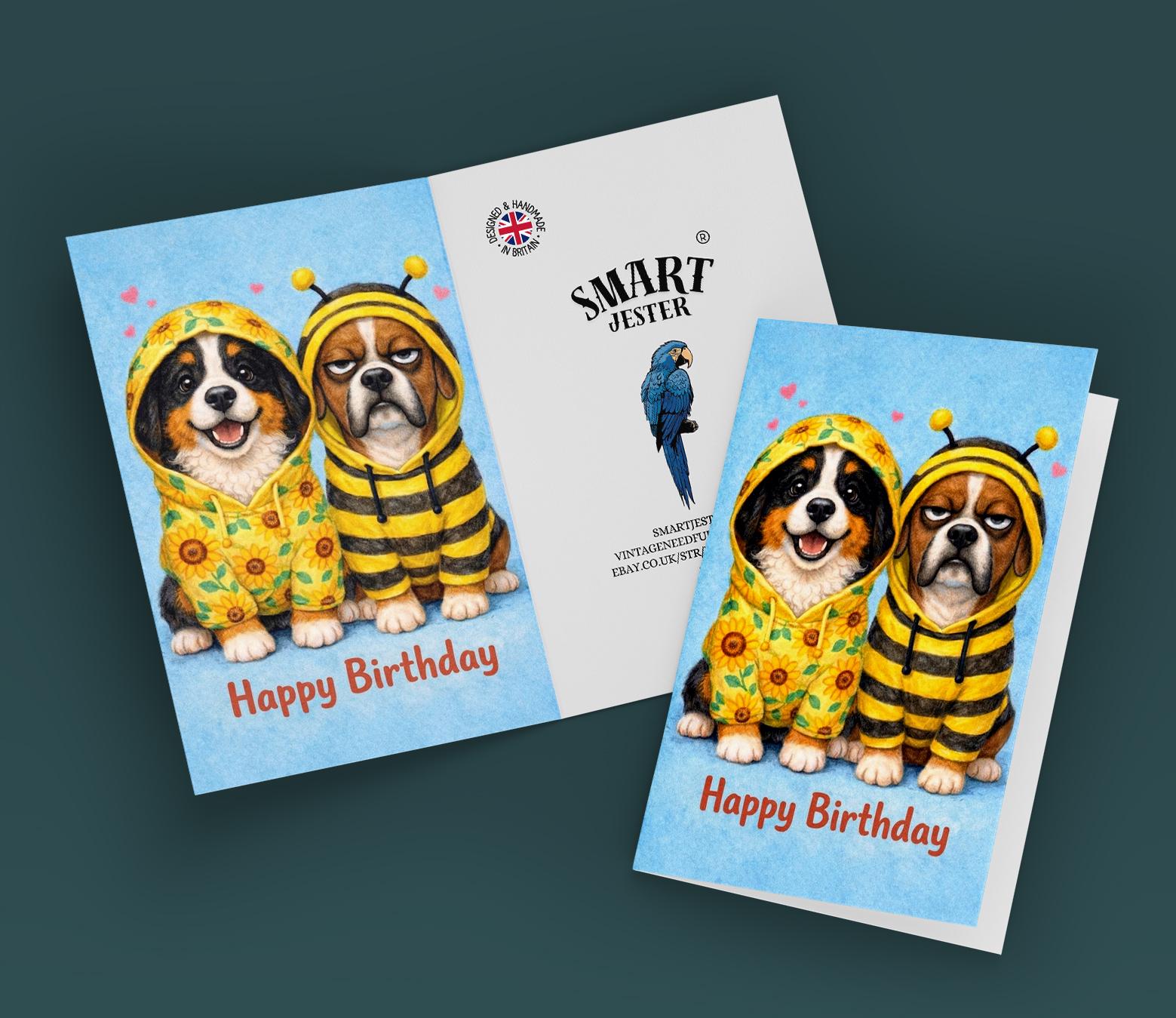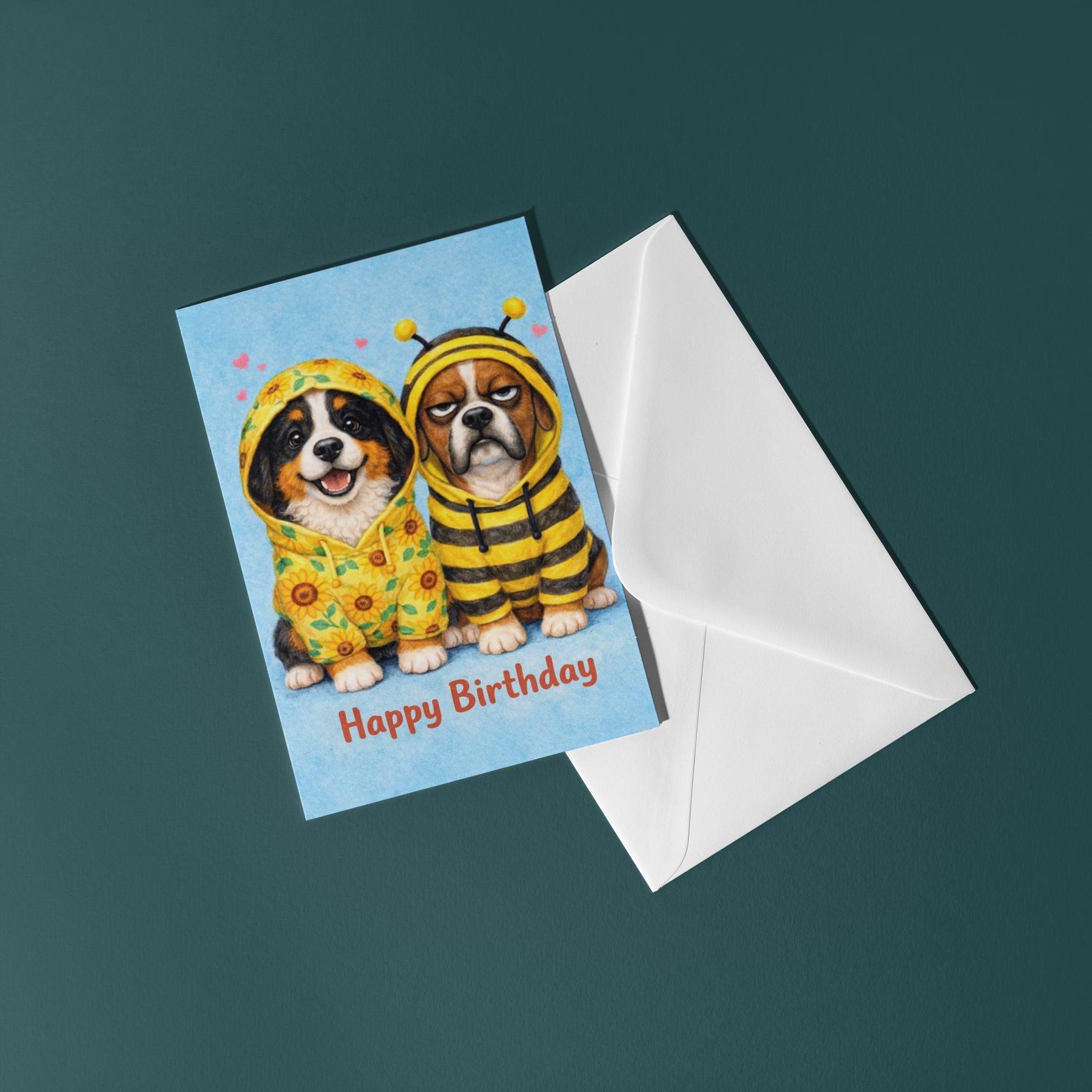 BLANK INTERIOR FOR A PERSONAL TOUCH: Our Dog Breeds Collection - Boxer and Bernese Mountain Dogs: One Bloom, One Buzz - Happy Birthday Card and other whimsical designs feature a blank interior, giving you ample space to write a personal message from the heart. Perfect for any occasion, each card comes with a matching white envelope, making it easy to send your unique sentiments to loved ones.