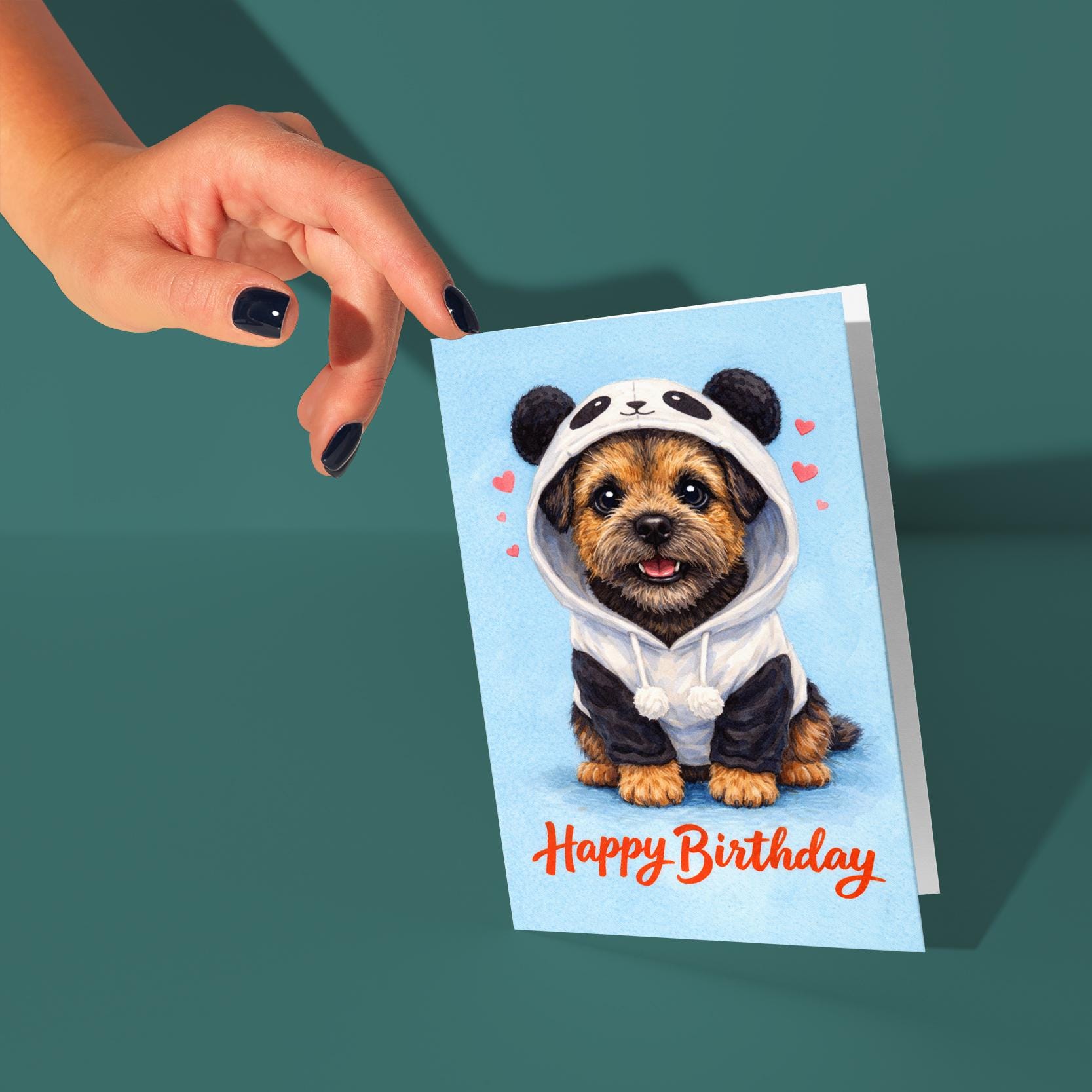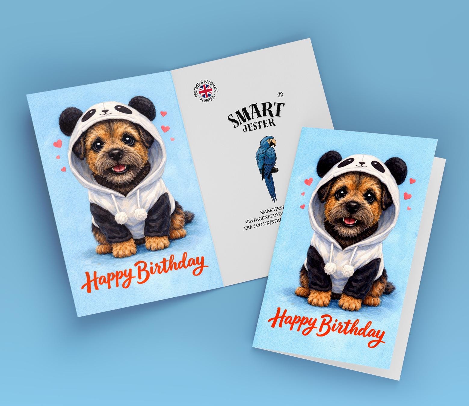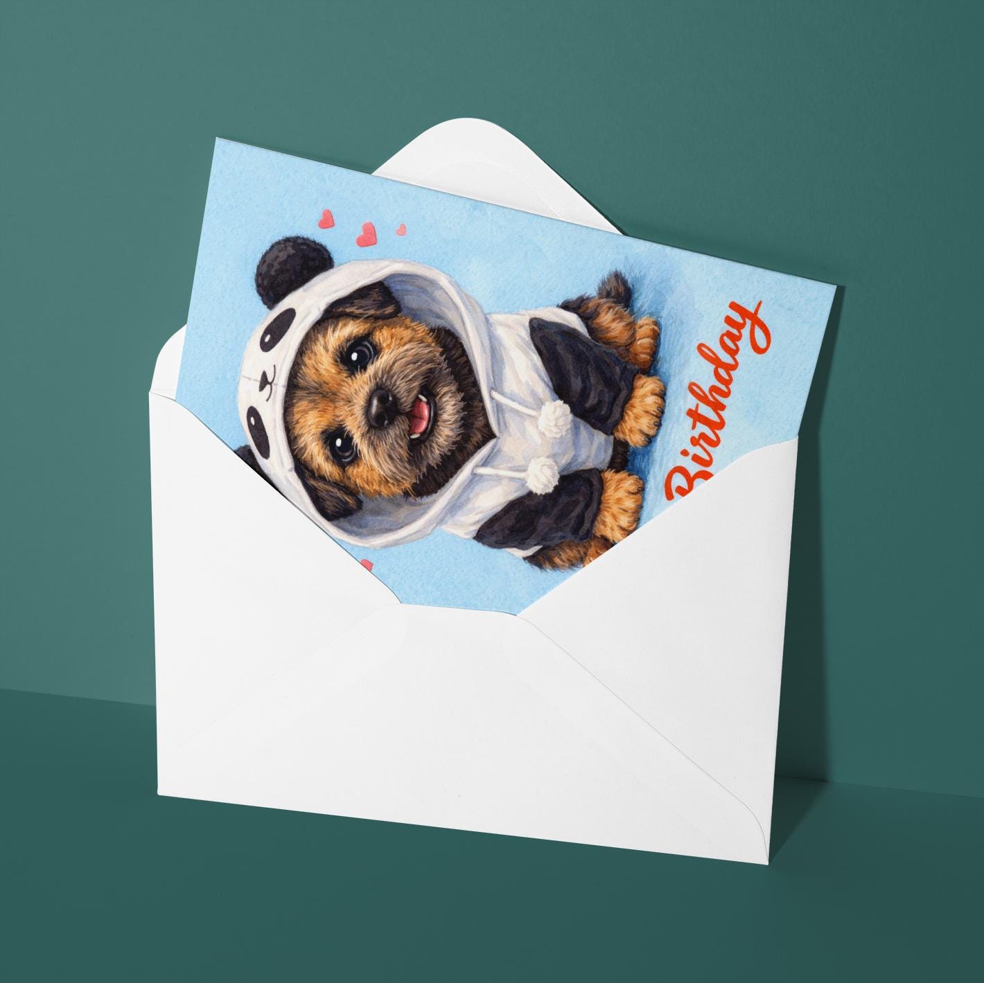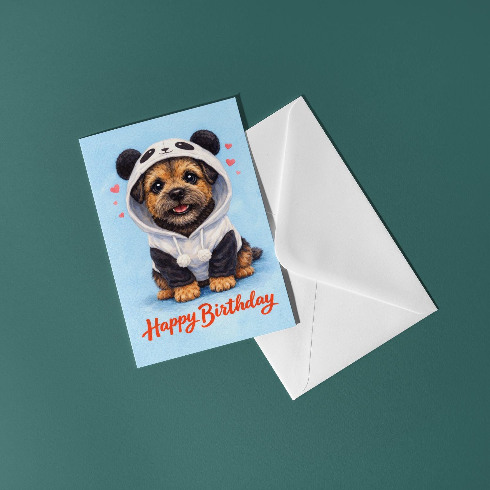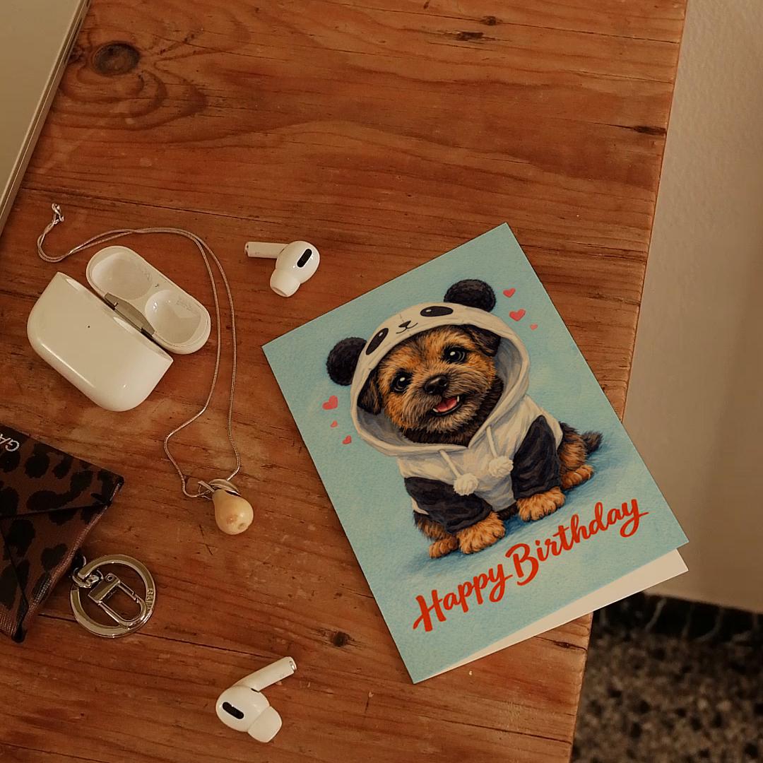 BLANK INTERIOR FOR A PERSONAL TOUCH: Our Dog Breeds Collection - Border Terrier Dog: Panda Disguise - Happy Birthday! card and other whimsical designs feature a blank interior, giving you ample space to write a personal message from the heart. Perfect for any occasion, each card comes with a matching white envelope, making it easy to send your unique sentiments to loved ones.