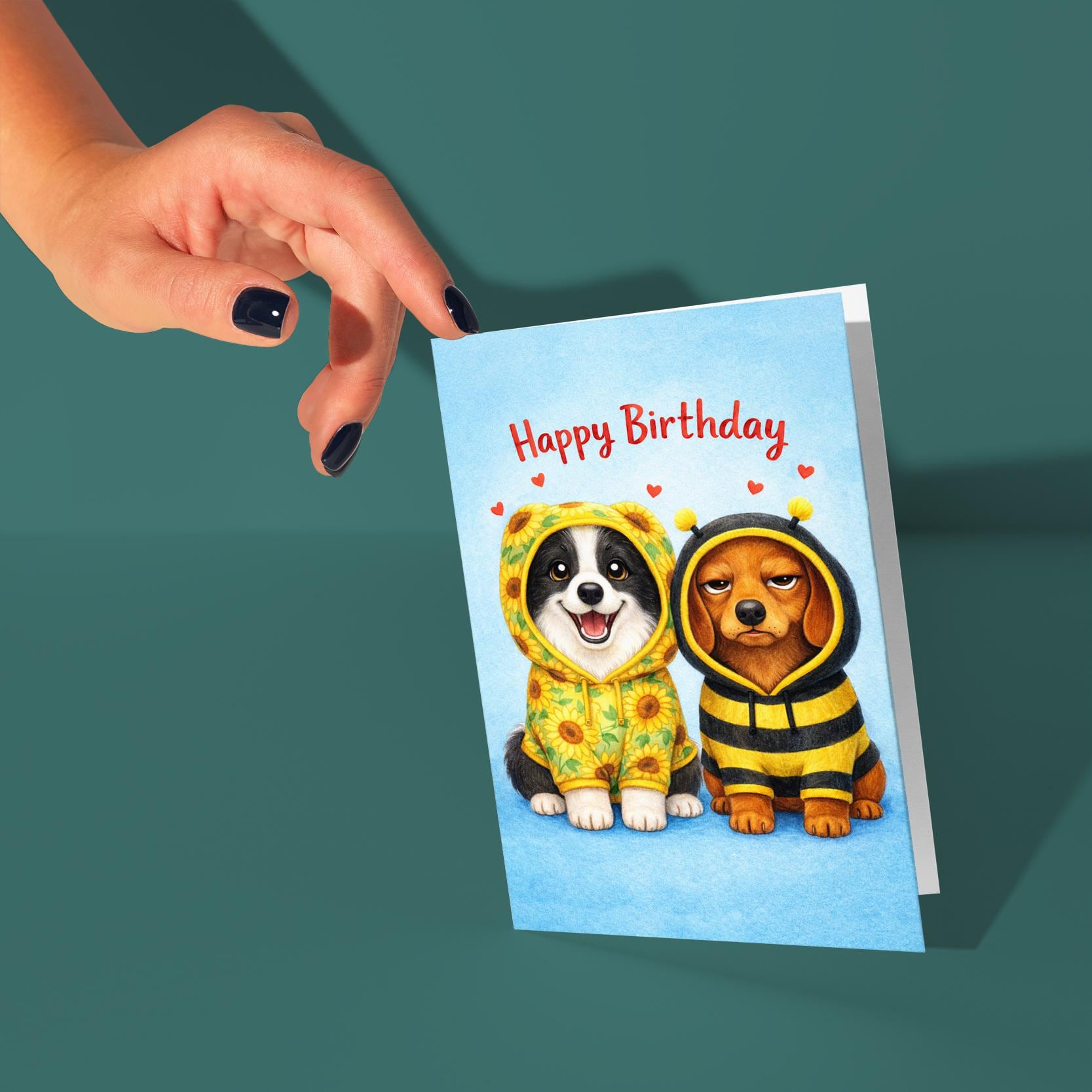 BLANK INTERIOR FOR A PERSONAL TOUCH: Our Dog Breeds Collection - Border Collie and Dachshund Dogs: One Bloom, One Buzz - Happy Birthday Card and other whimsical designs feature a blank interior, giving you ample space to write a personal message from the heart. Perfect for any occasion, each card comes with a matching white envelope, making it easy to send your unique sentiments to loved ones.