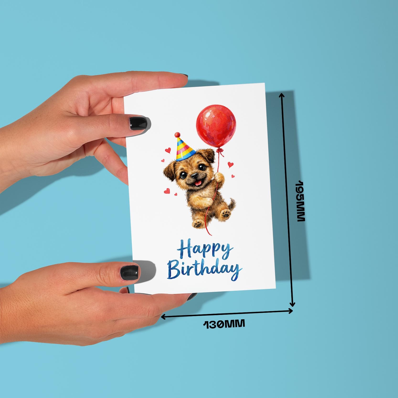 BLANK INTERIOR FOR A PERSONAL TOUCH: Our Dog Breeds Collection - Border Terrier Dog: Balloon Party Lift-Off - Happy Birthday! card and other whimsical designs feature a blank interior, giving you ample space to write a personal message from the heart. Perfect for any occasion, each card comes with a matching white envelope, making it easy to send your unique sentiments to loved ones.