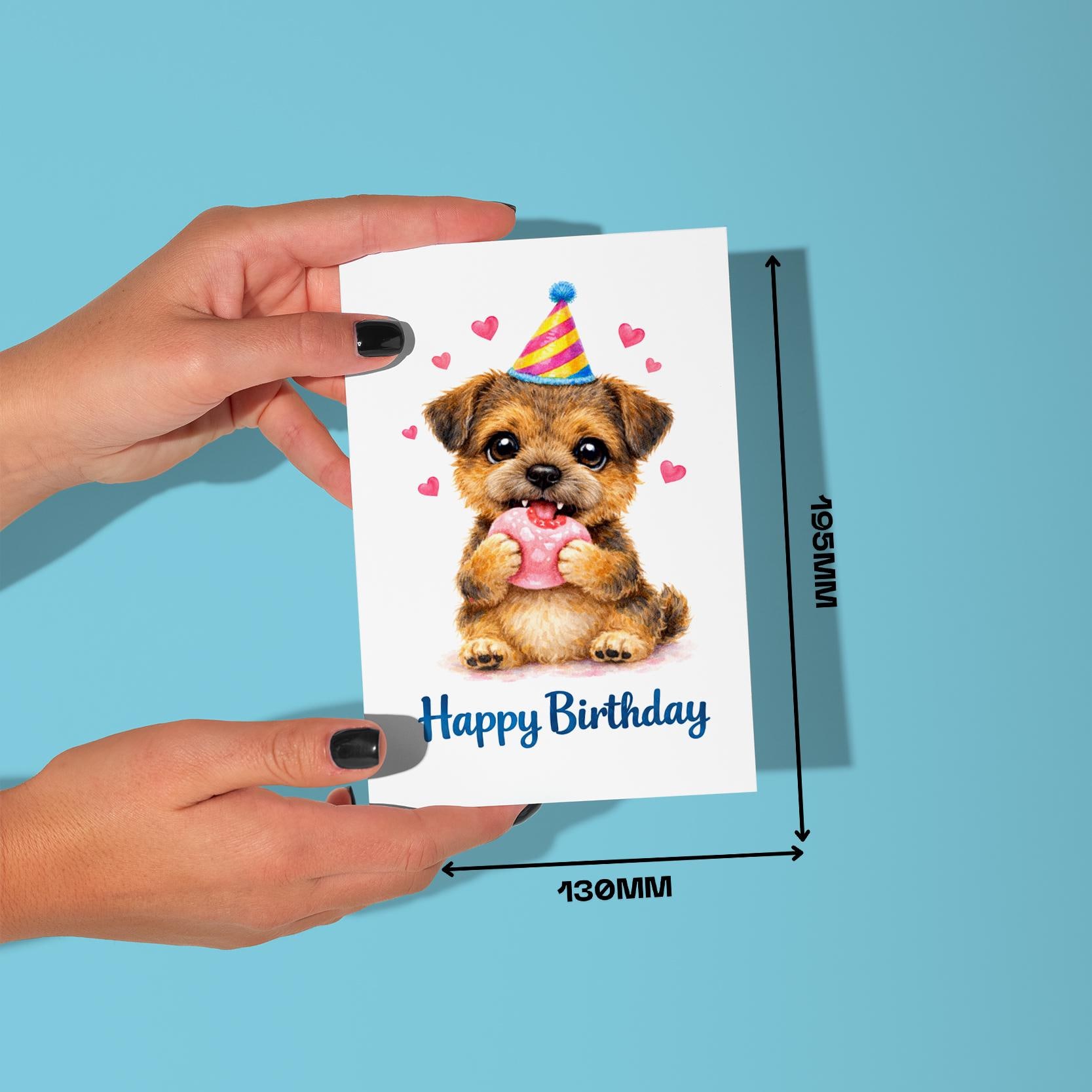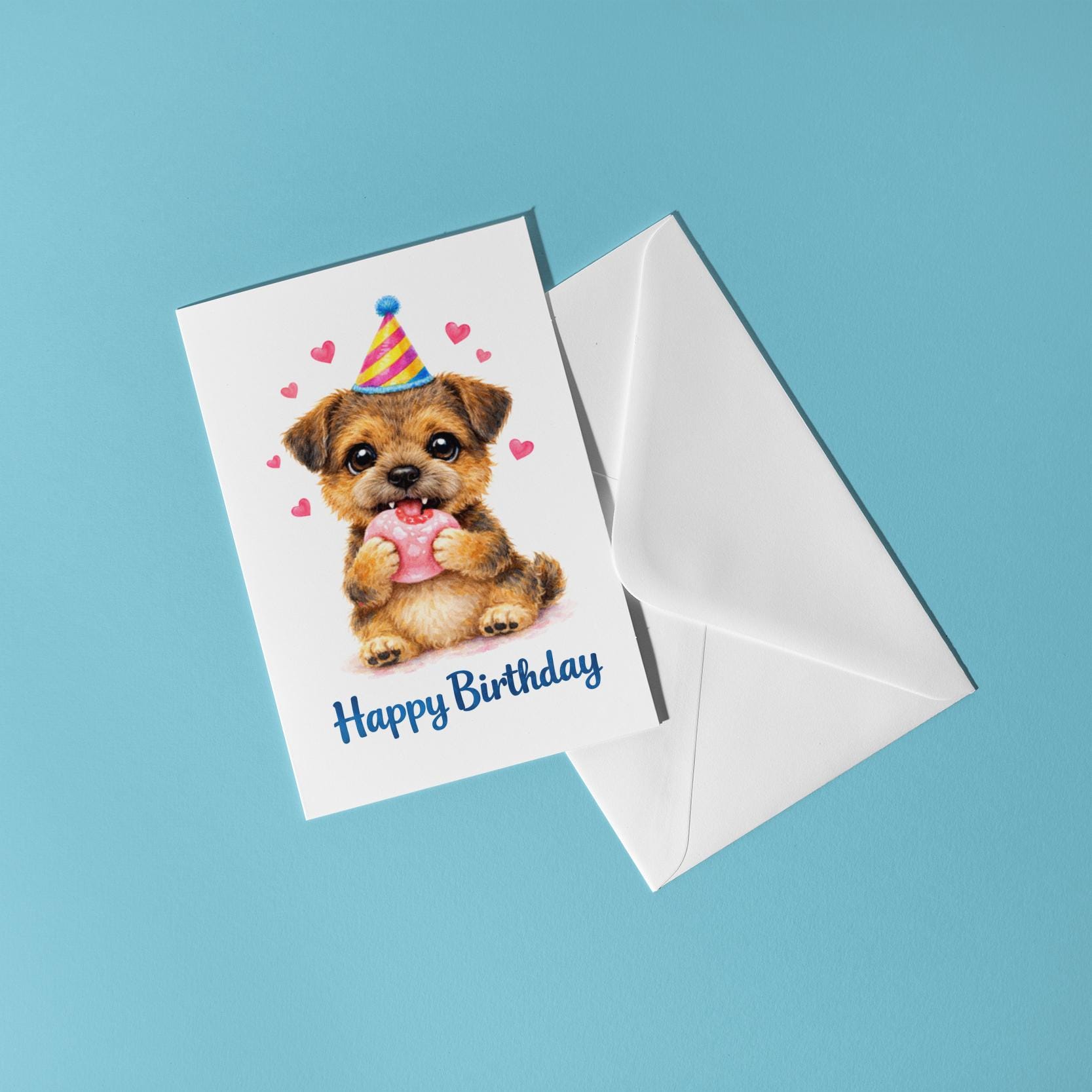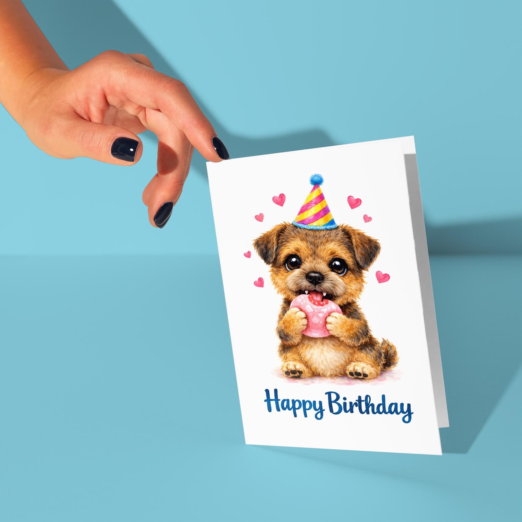 BLANK INTERIOR FOR A PERSONAL TOUCH: Our Kawaii Art Series - Border Terrier Puppy: Cute Dog Pink Mochi Bean Munch - Happy Birthday! card and other whimsical designs feature a blank interior, giving you ample space to write a personal message from the heart. Perfect for any occasion, each card comes with a matching white envelope, making it easy to send your unique sentiments to loved ones.