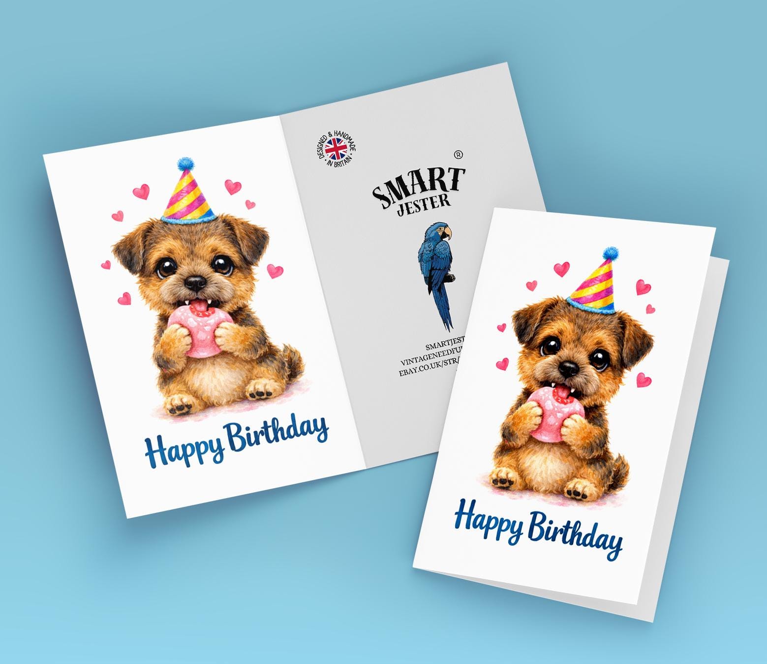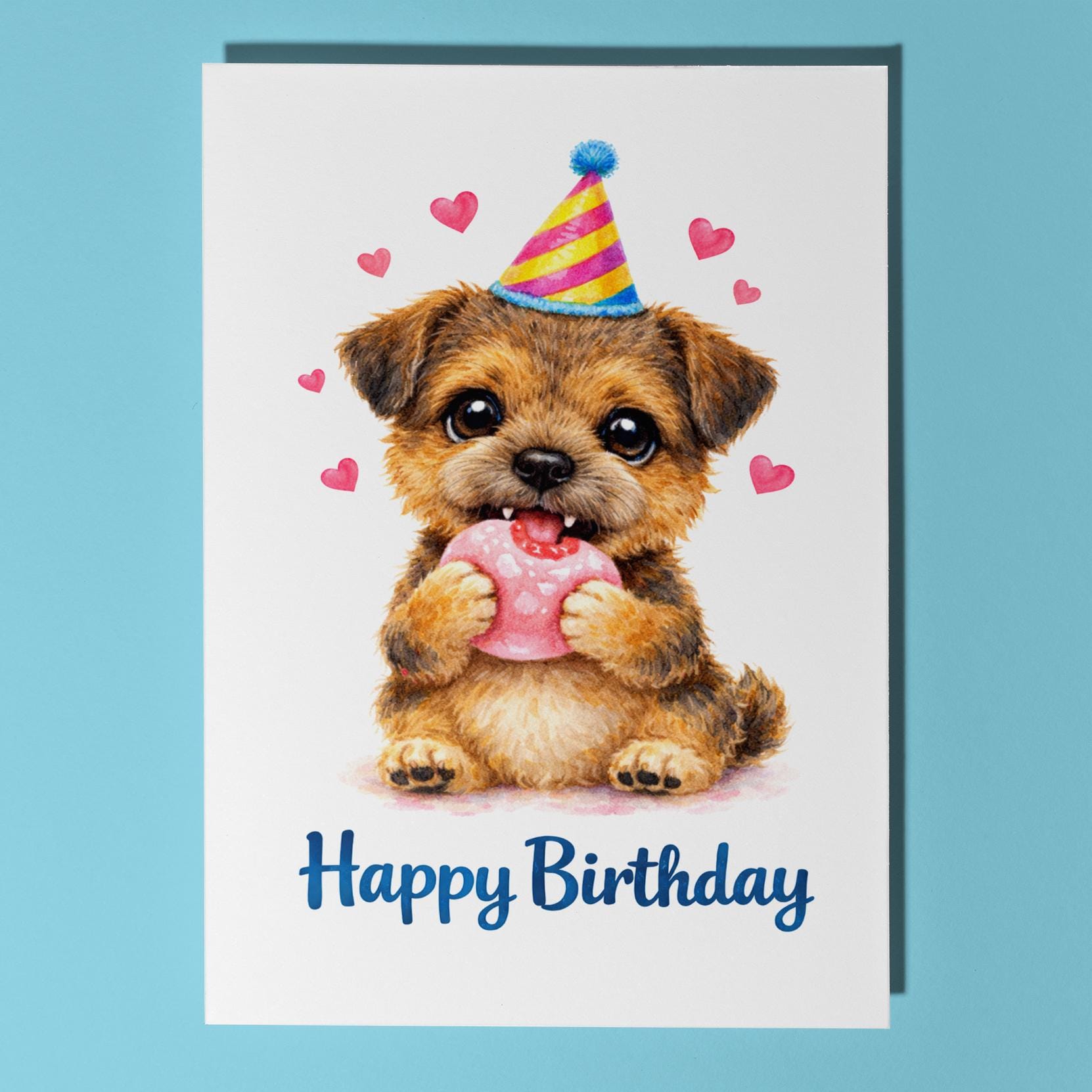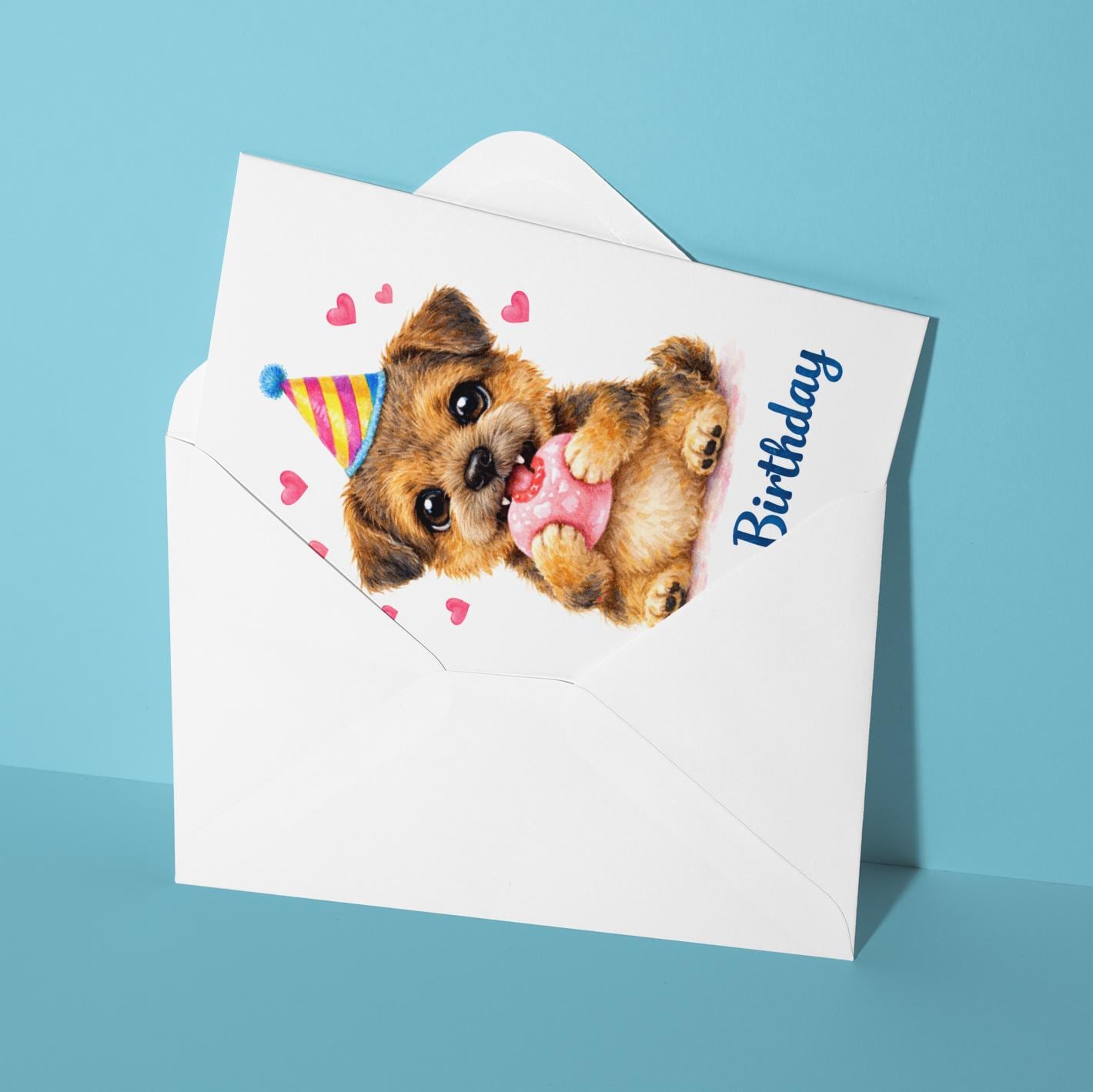 BLANK INTERIOR FOR A PERSONAL TOUCH: Our Kawaii Art Series - Border Terrier Puppy: Cute Dog Pink Mochi Bean Munch - Happy Birthday! card and other whimsical designs feature a blank interior, giving you ample space to write a personal message from the heart. Perfect for any occasion, each card comes with a matching white envelope, making it easy to send your unique sentiments to loved ones.