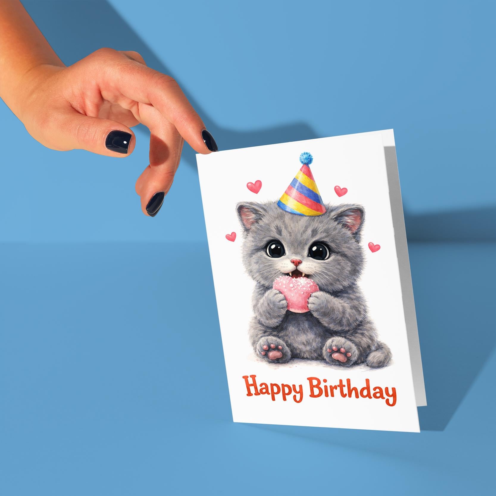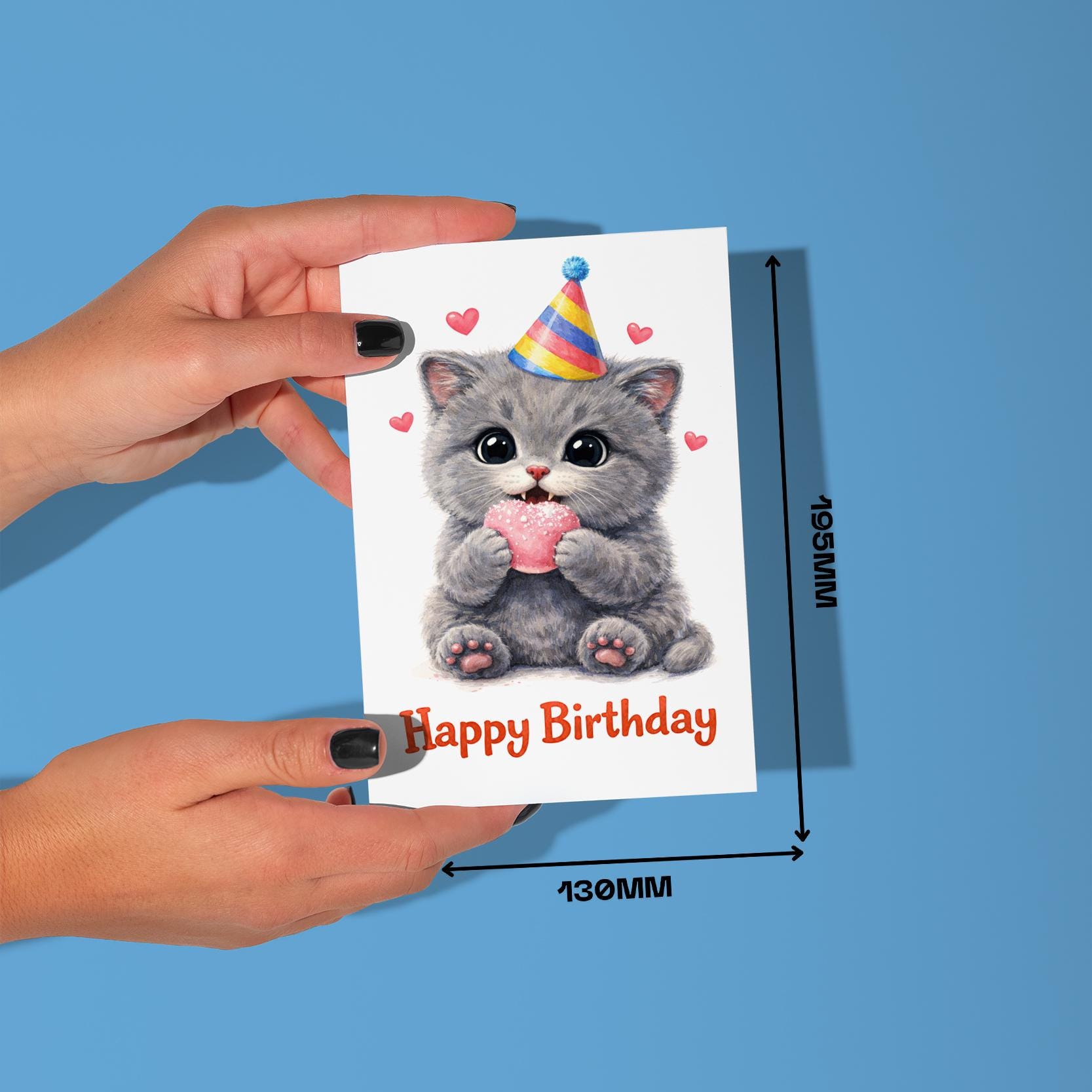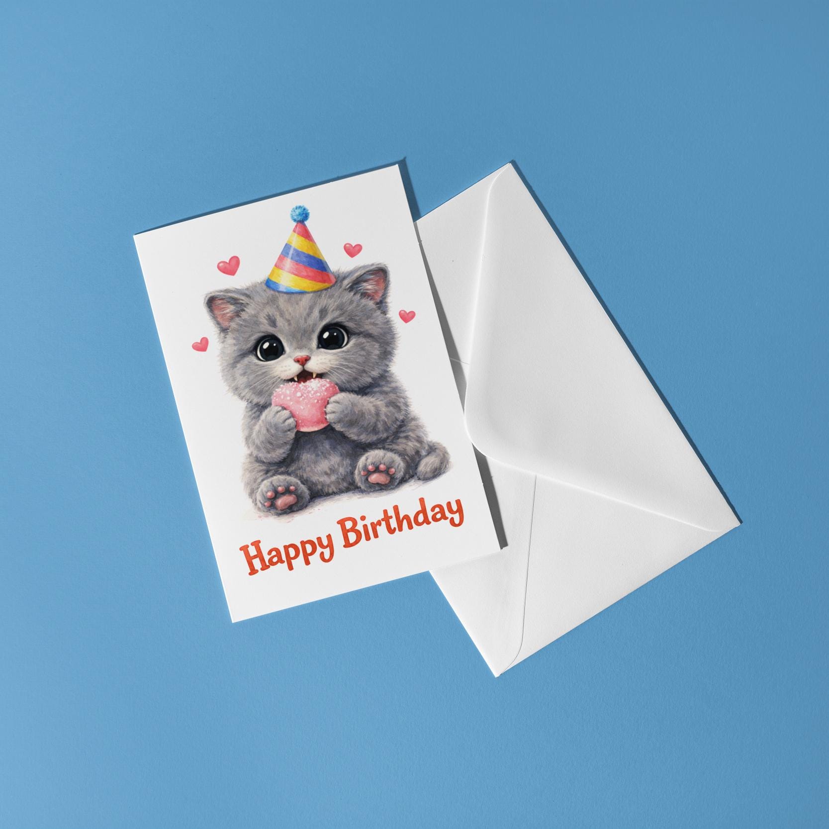 BLANK INTERIOR FOR A PERSONAL TOUCH: Our Kawaii Art Series -British Shorthair Kitten Cute Cat Pink Mochi Bean Munch Happy Birthday! card and other whimsical designs feature a blank interior, giving you ample space to write a personal message from the heart. Perfect for any occasion, each card comes with a matching white envelope, making it easy to send your unique sentiments to loved ones.