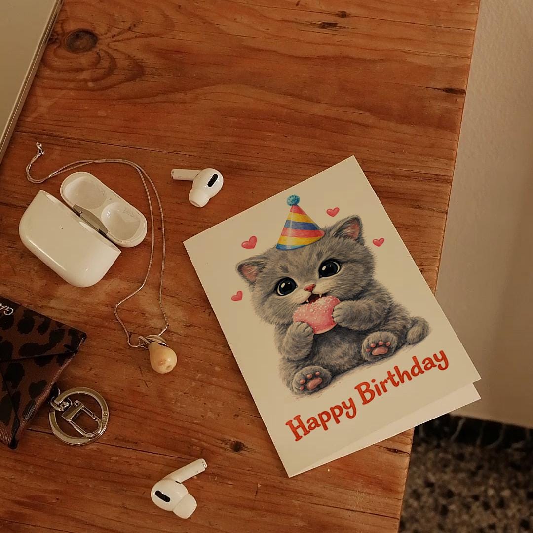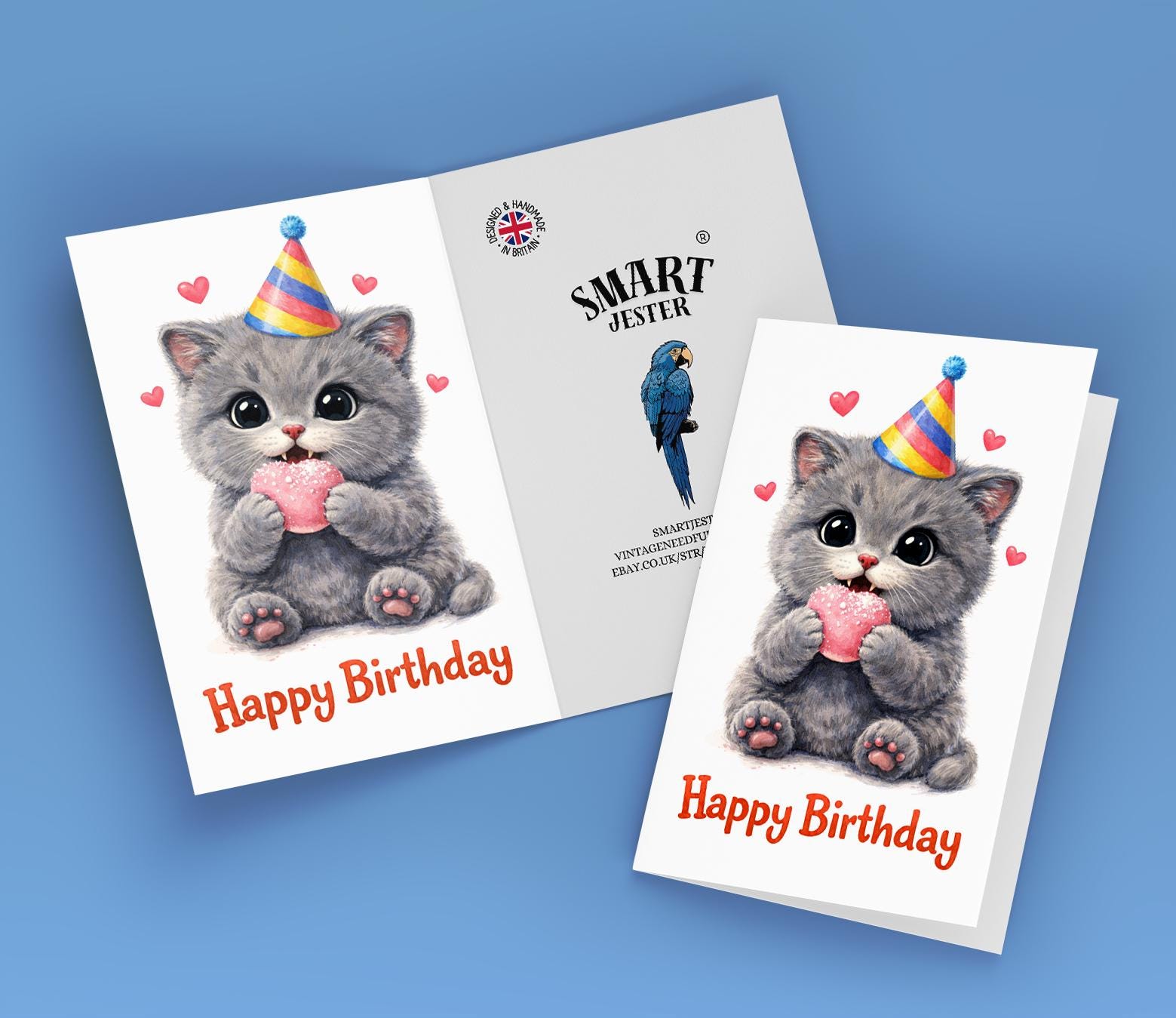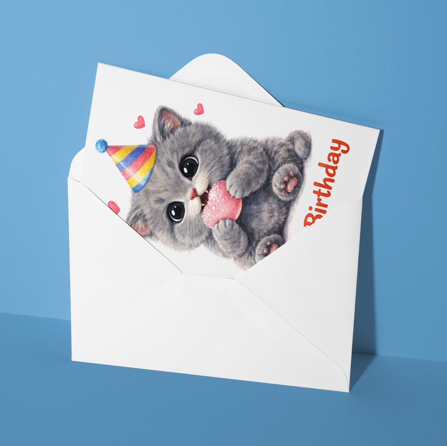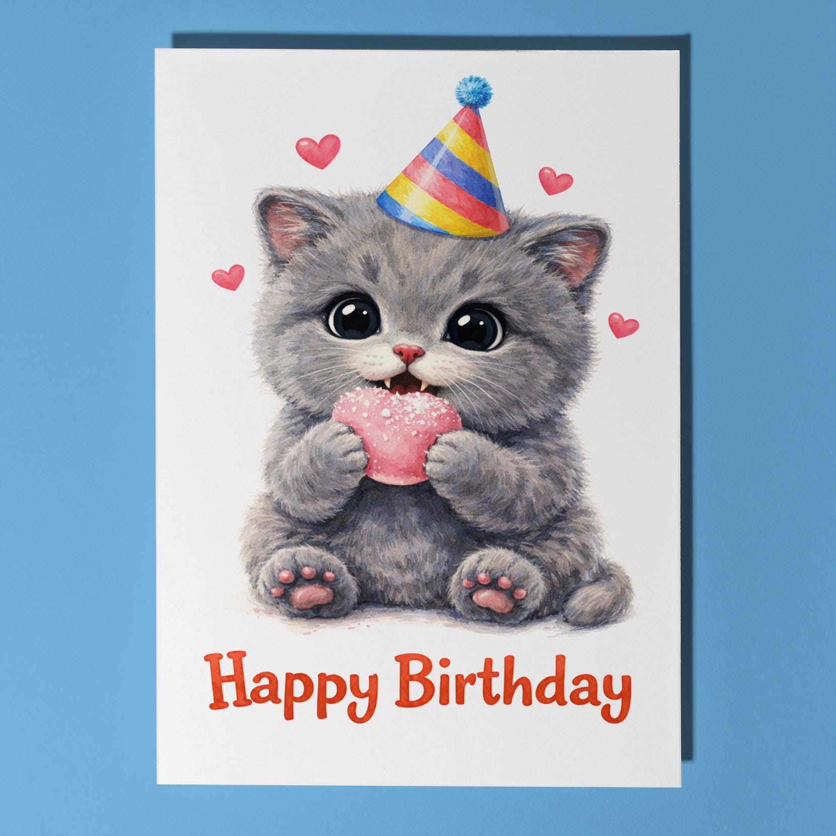 BLANK INTERIOR FOR A PERSONAL TOUCH: Our Kawaii Art Series -British Shorthair Kitten Cute Cat Pink Mochi Bean Munch Happy Birthday! card and other whimsical designs feature a blank interior, giving you ample space to write a personal message from the heart. Perfect for any occasion, each card comes with a matching white envelope, making it easy to send your unique sentiments to loved ones.
