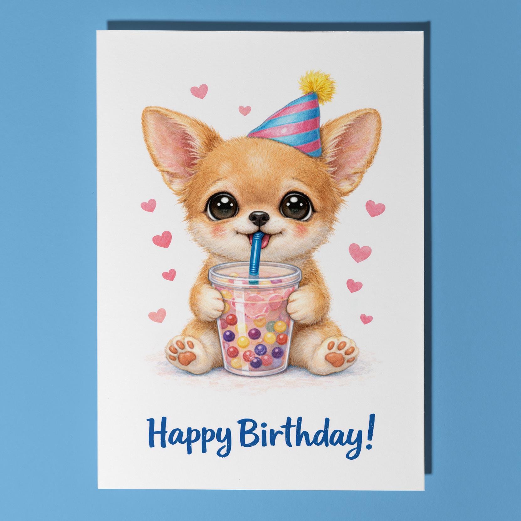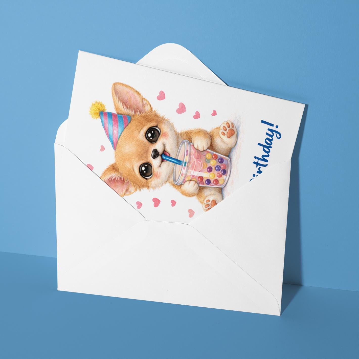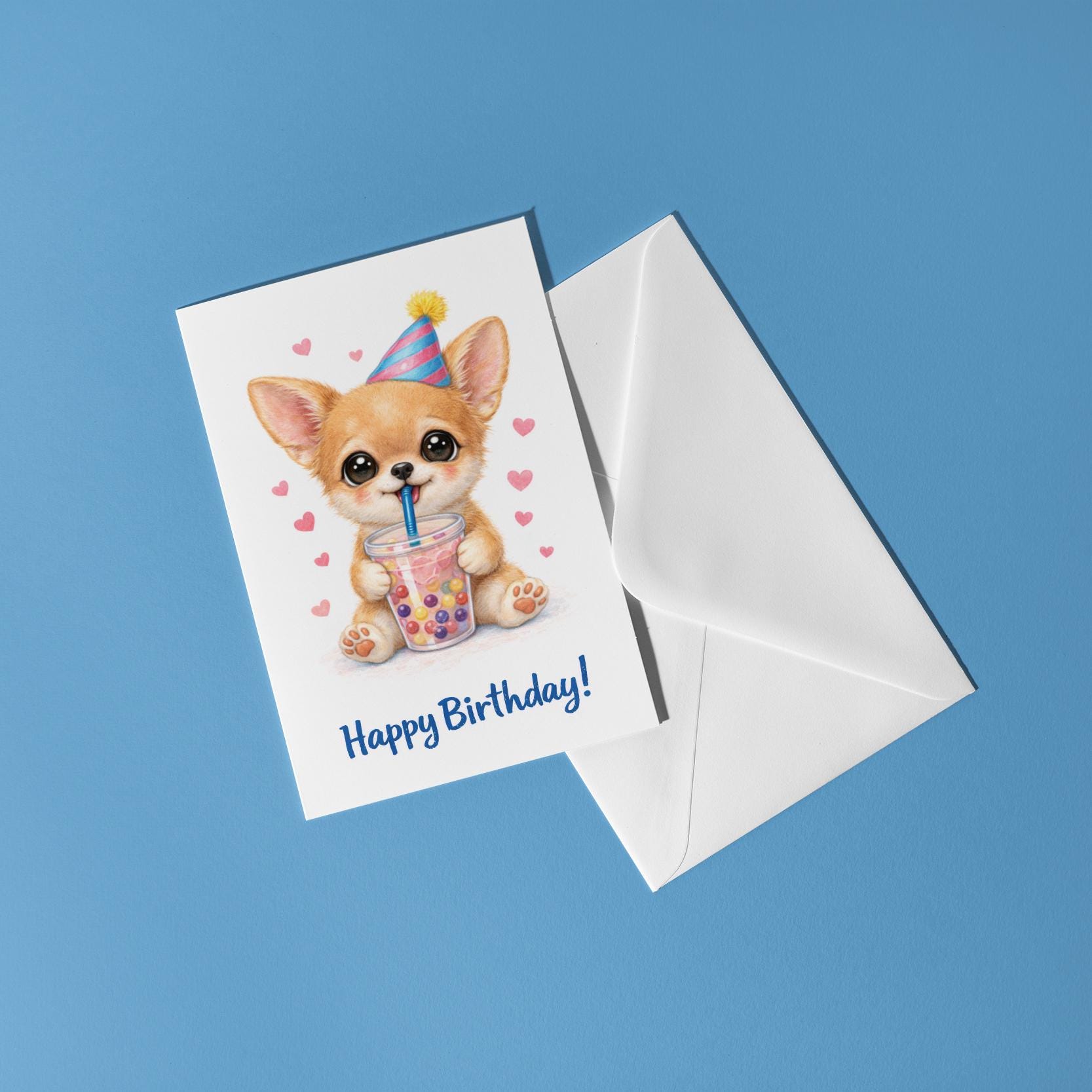 BLANK INTERIOR FOR A PERSONAL TOUCH: Our Kawaii Art Series - Kawaii Art Chihuahua puppy: Sweet Boba Sip Bubble Tea - Happy Birthday! card and other whimsical designs feature a blank interior, giving you ample space to write a personal message from the heart. Perfect for any occasion, each card comes with a matching white envelope, making it easy to send your unique sentiments to loved ones.