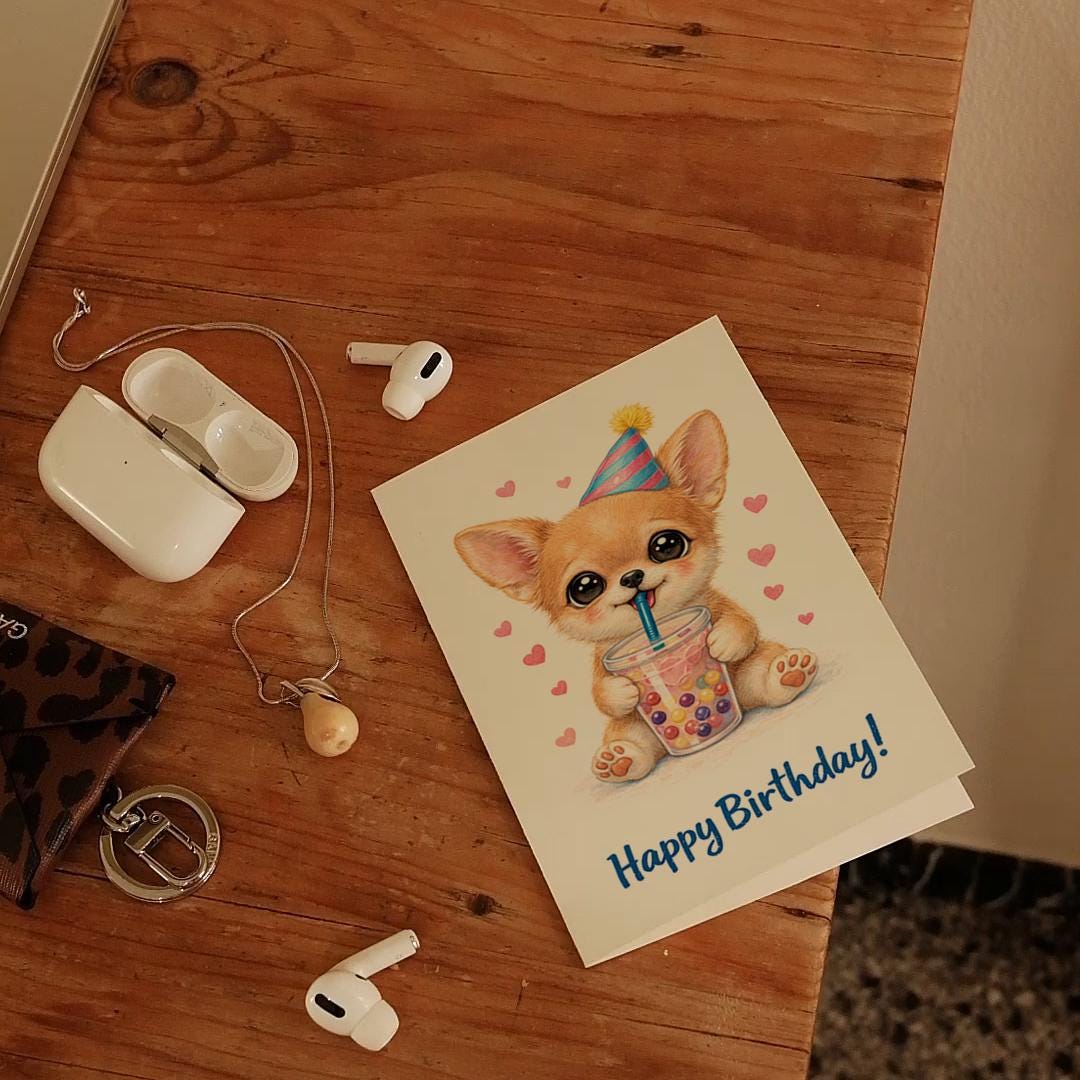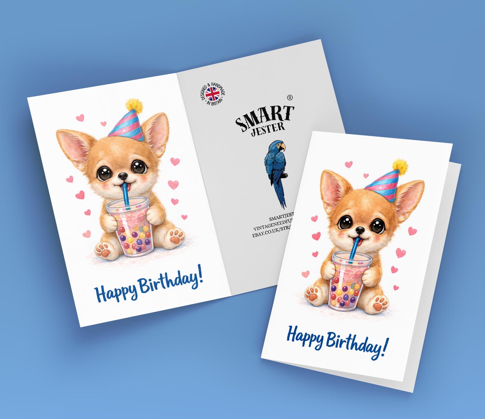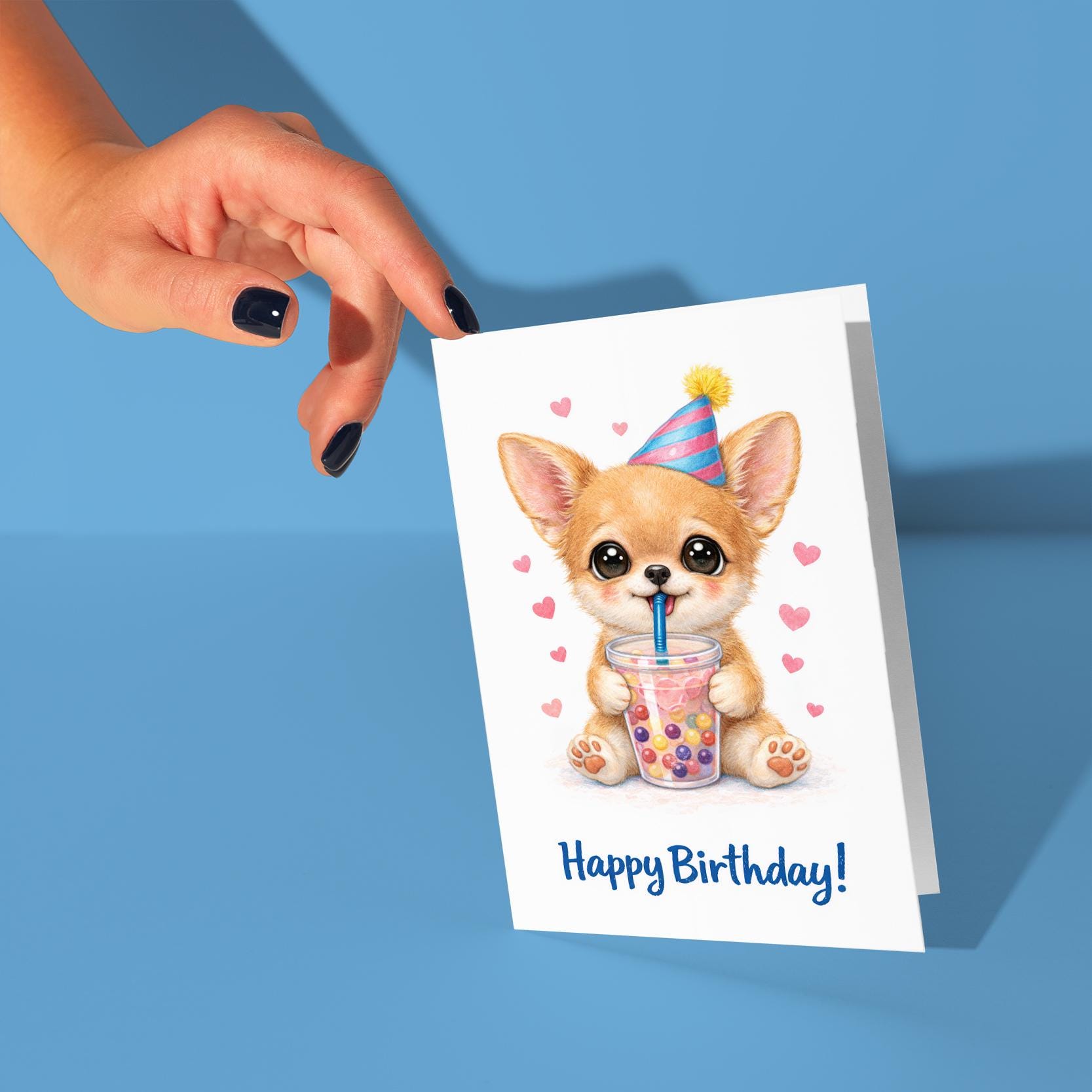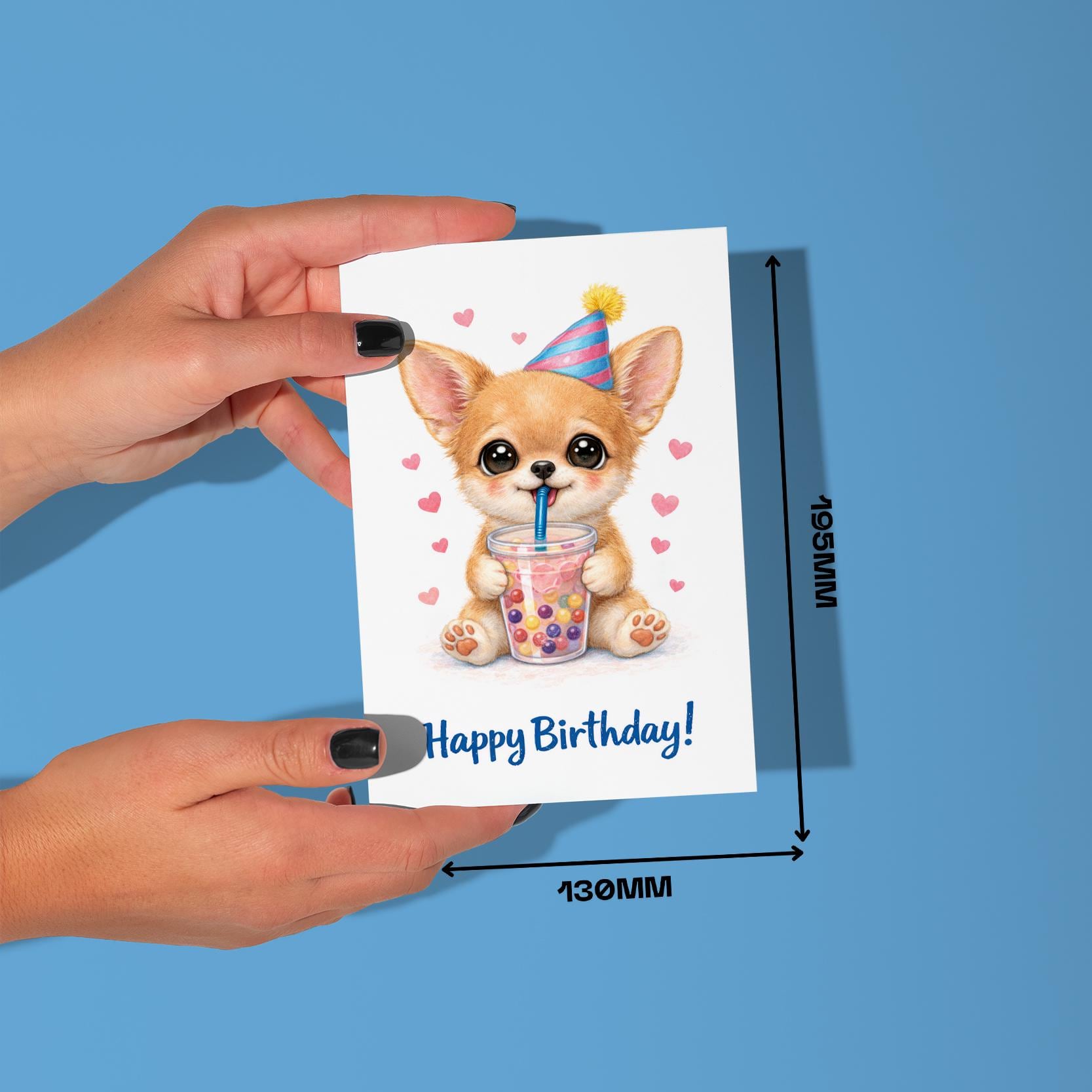 BLANK INTERIOR FOR A PERSONAL TOUCH: Our Kawaii Art Series - Kawaii Art Chihuahua puppy: Sweet Boba Sip Bubble Tea - Happy Birthday! card and other whimsical designs feature a blank interior, giving you ample space to write a personal message from the heart. Perfect for any occasion, each card comes with a matching white envelope, making it easy to send your unique sentiments to loved ones.
