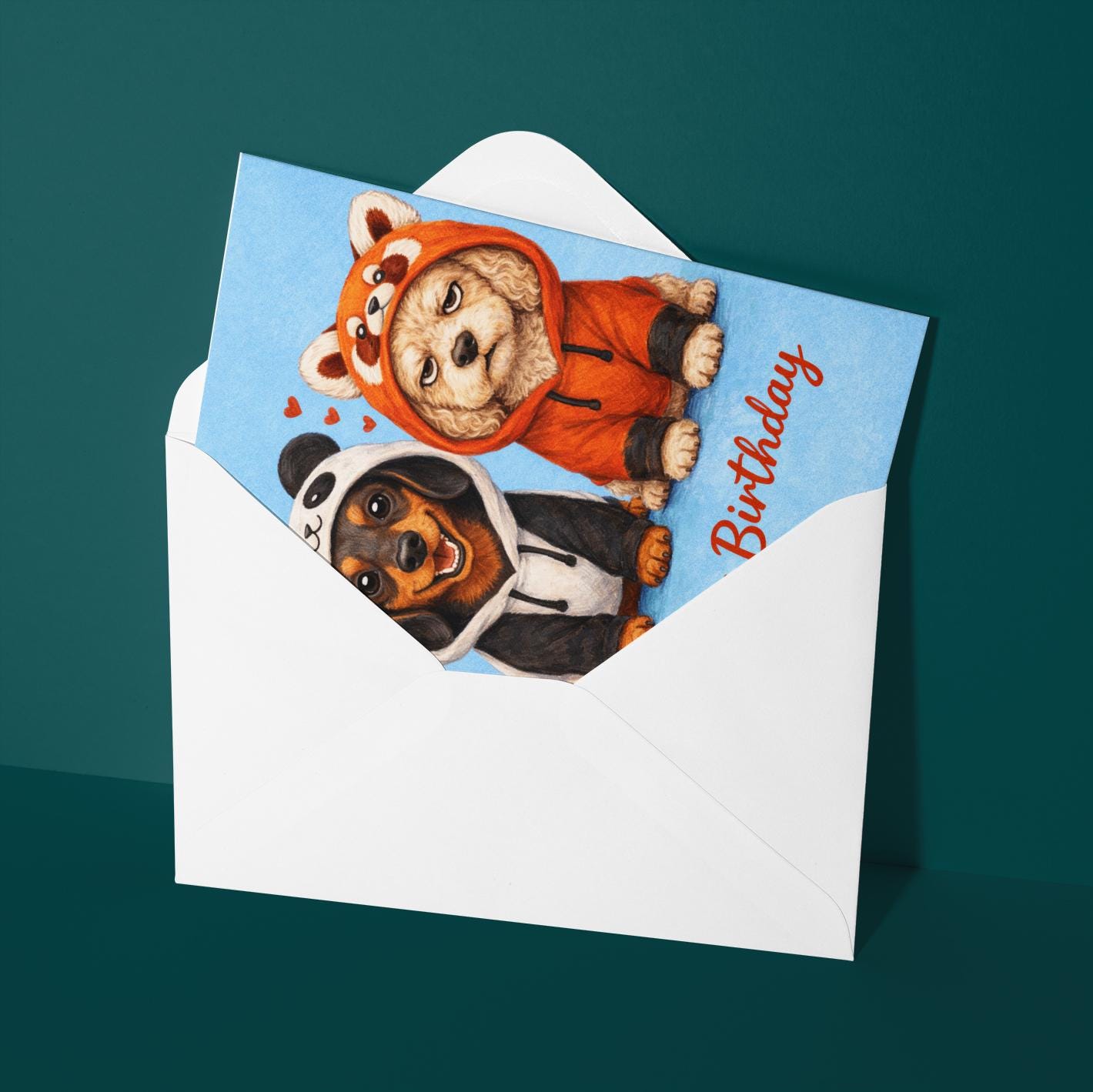 BLANK INTERIOR FOR A PERSONAL TOUCH: Our Dog Breeds Collection - Cockapoo Dachshund dogs Panda Red Panda - Happy Birthday Card and other whimsical designs feature a blank interior, giving you ample space to write a personal message from the heart. Perfect for any occasion, each card comes with a matching white envelope, making it easy to send your unique sentiments to loved ones.