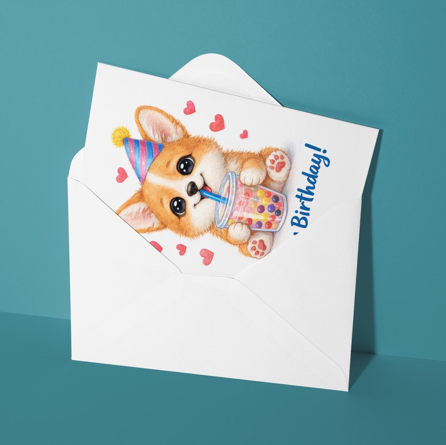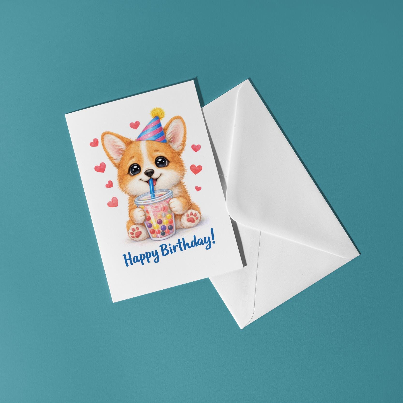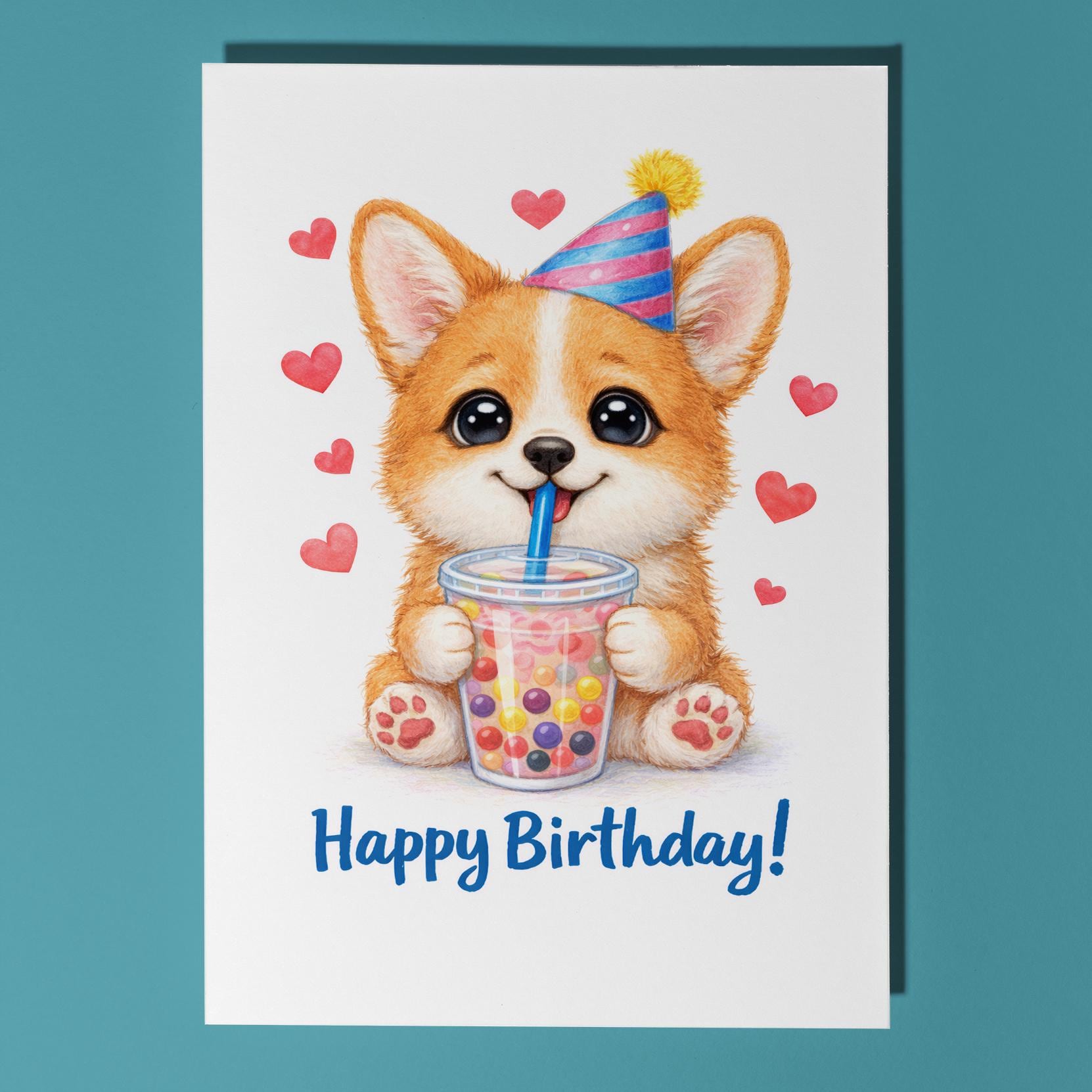 BLANK INTERIOR FOR A PERSONAL TOUCH: Our Kawaii Art Series - Kawaii Art Corgi puppy: Sweet Boba Sip Bubble Tea - Happy Birthday! card and other whimsical designs feature a blank interior, giving you ample space to write a personal message from the heart. Perfect for any occasion, each card comes with a matching white envelope, making it easy to send your unique sentiments to loved ones.