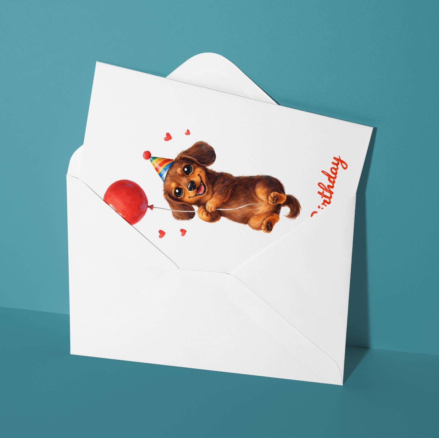 BLANK INTERIOR FOR A PERSONAL TOUCH: Our Dog Breeds Collection - Dachshund Dog: Balloon Party Lift-Off - Happy Birthday! card and other whimsical designs feature a blank interior, giving you ample space to write a personal message from the heart. Perfect for any occasion, each card comes with a matching white envelope, making it easy to send your unique sentiments to loved ones.