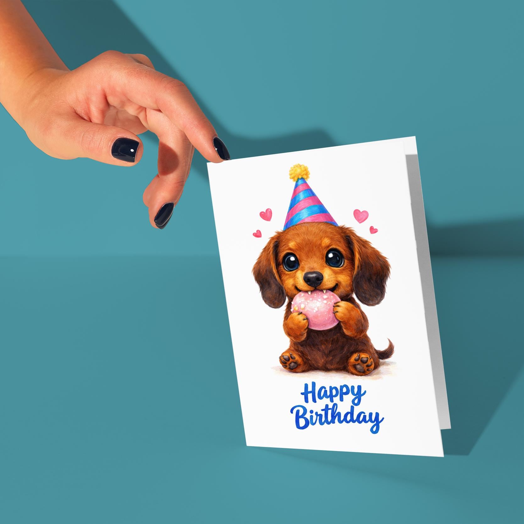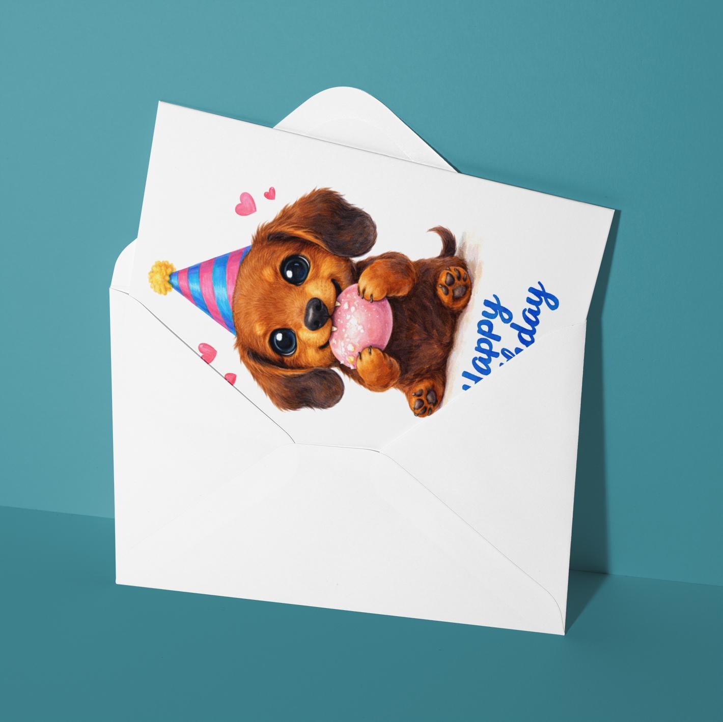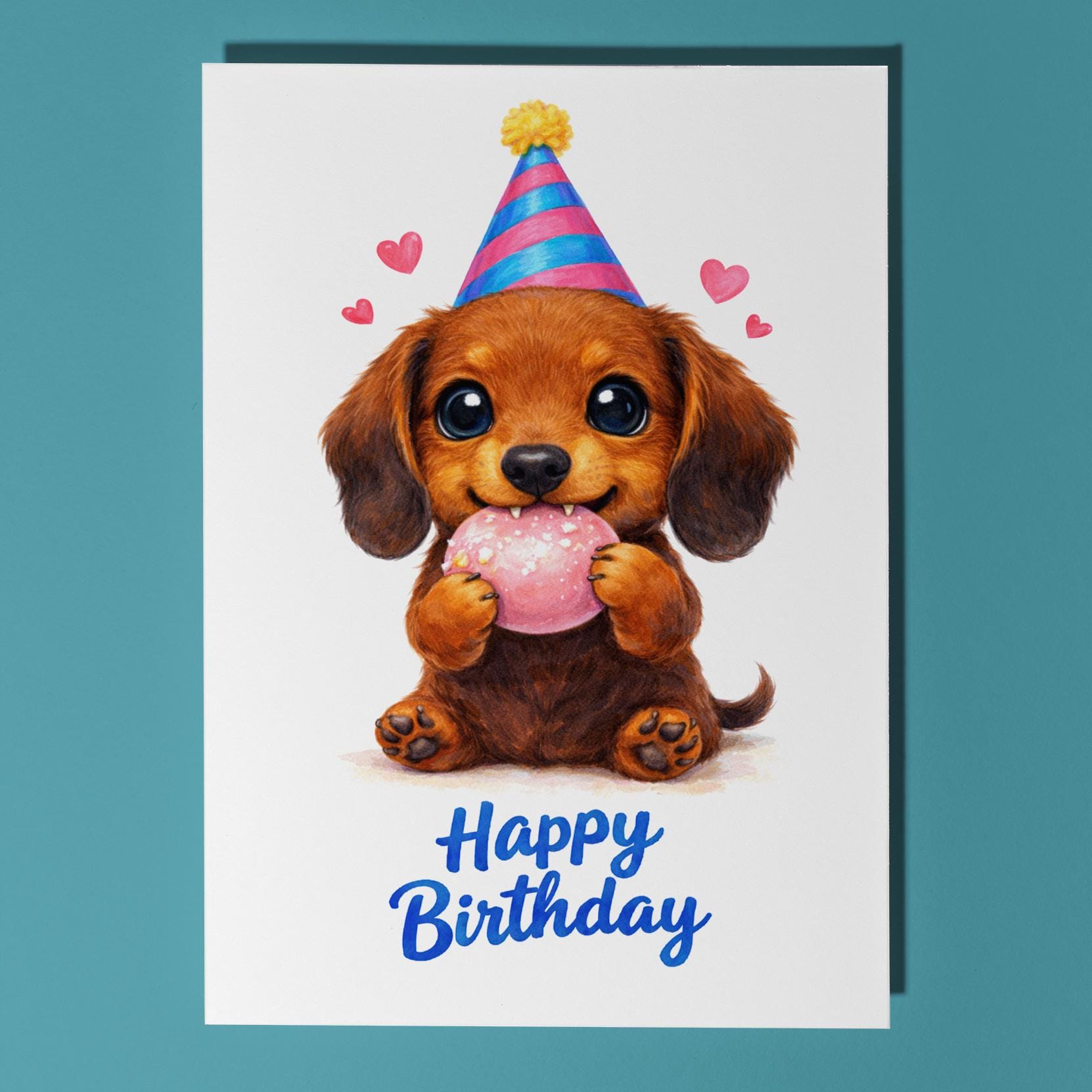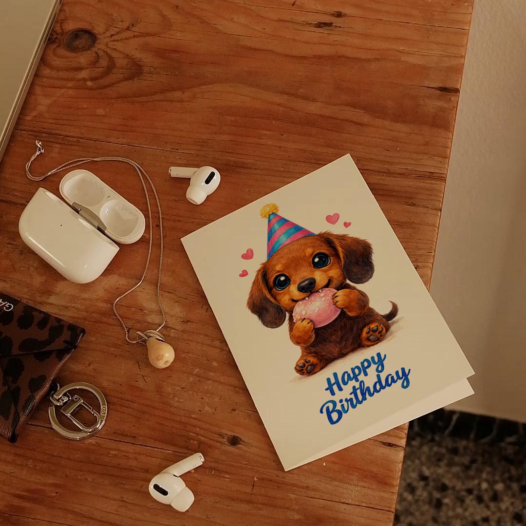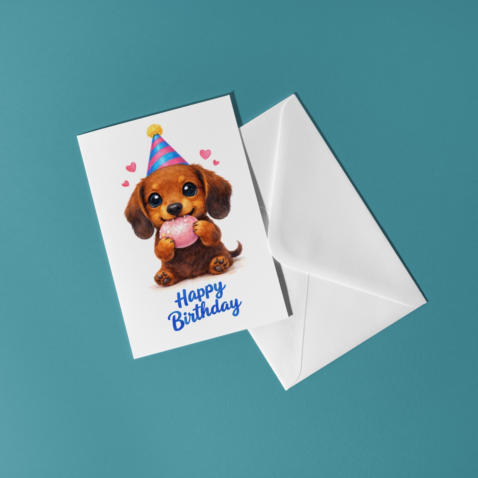 BLANK INTERIOR FOR A PERSONAL TOUCH: Our Kawaii Art Series - Dachshund Puppy: Cute Dog Pink Mochi Bean Munch - Happy Birthday! card and other whimsical designs feature a blank interior, giving you ample space to write a personal message from the heart. Perfect for any occasion, each card comes with a matching white envelope, making it easy to send your unique sentiments to loved ones.