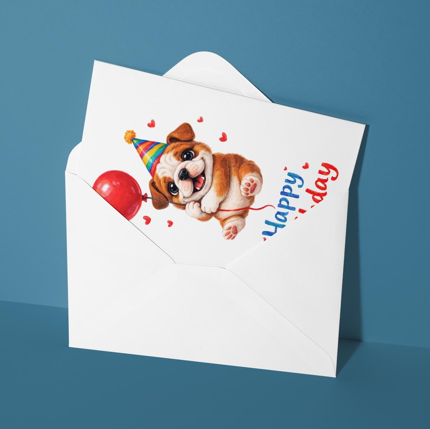 BLANK INTERIOR FOR A PERSONAL TOUCH: Our Dog Breeds Collection - English Bulldog Dog: Balloon Party Lift-Off - Happy Birthday! card and other whimsical designs feature a blank interior, giving you ample space to write a personal message from the heart. Perfect for any occasion, each card comes with a matching white envelope, making it easy to send your unique sentiments to loved ones.