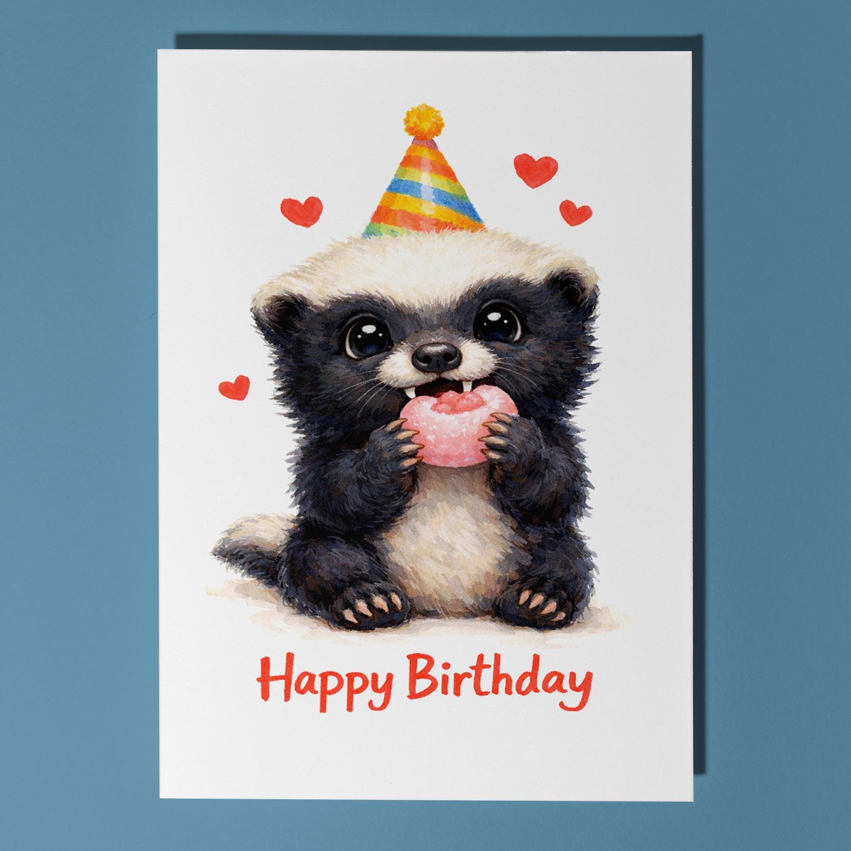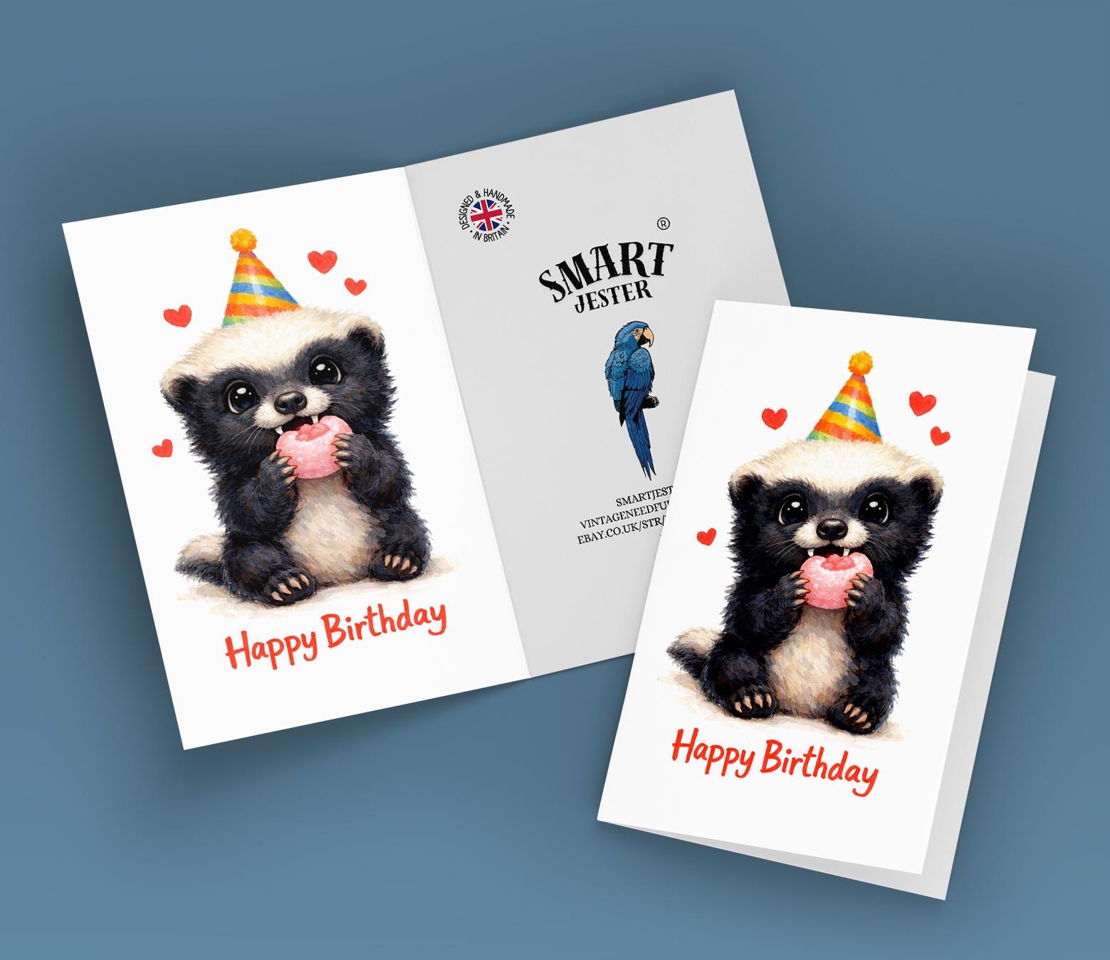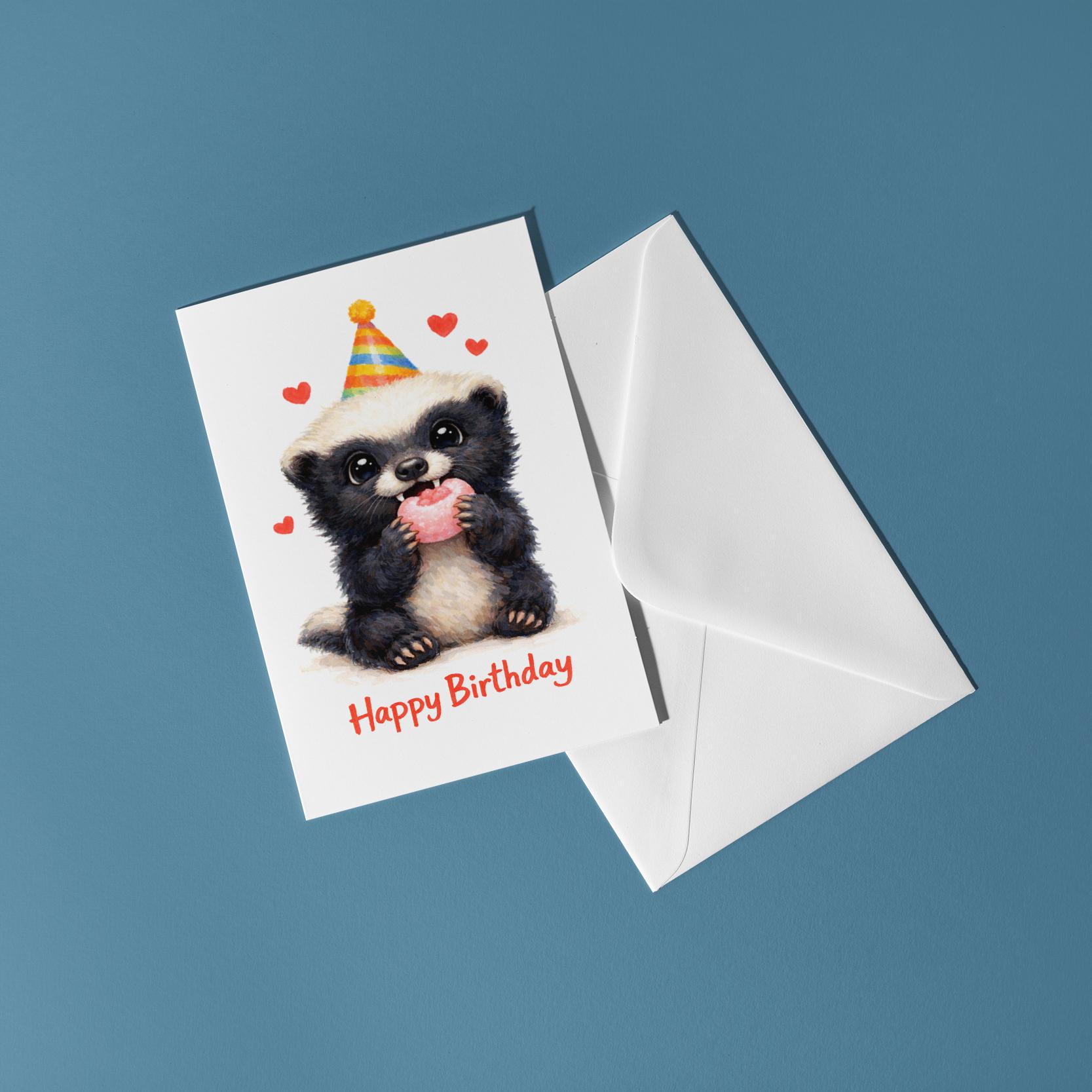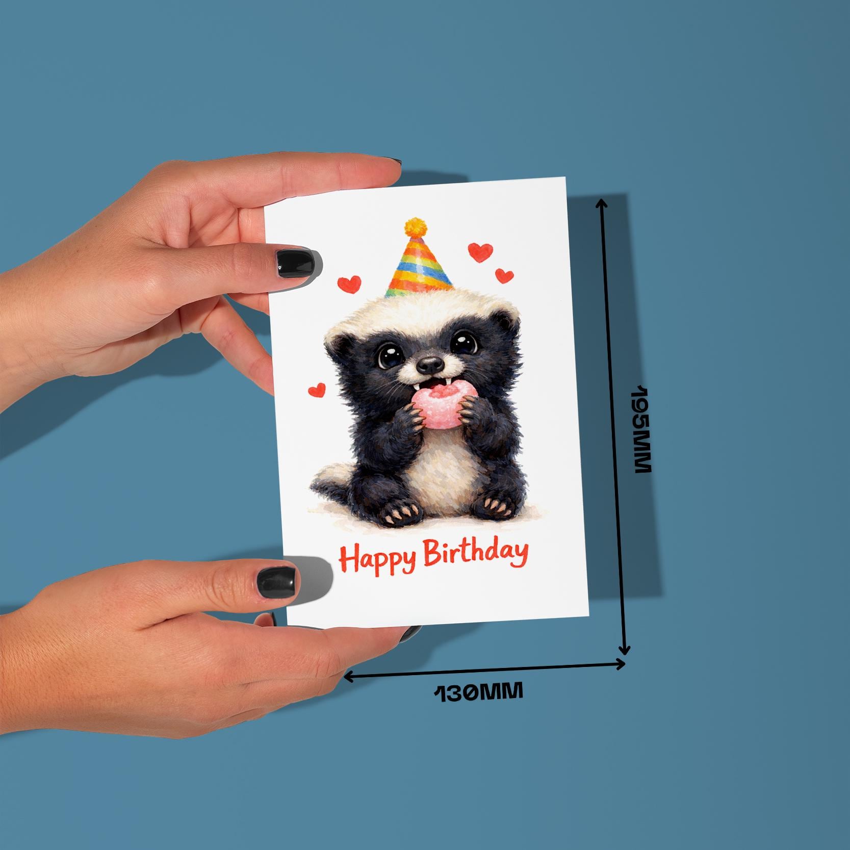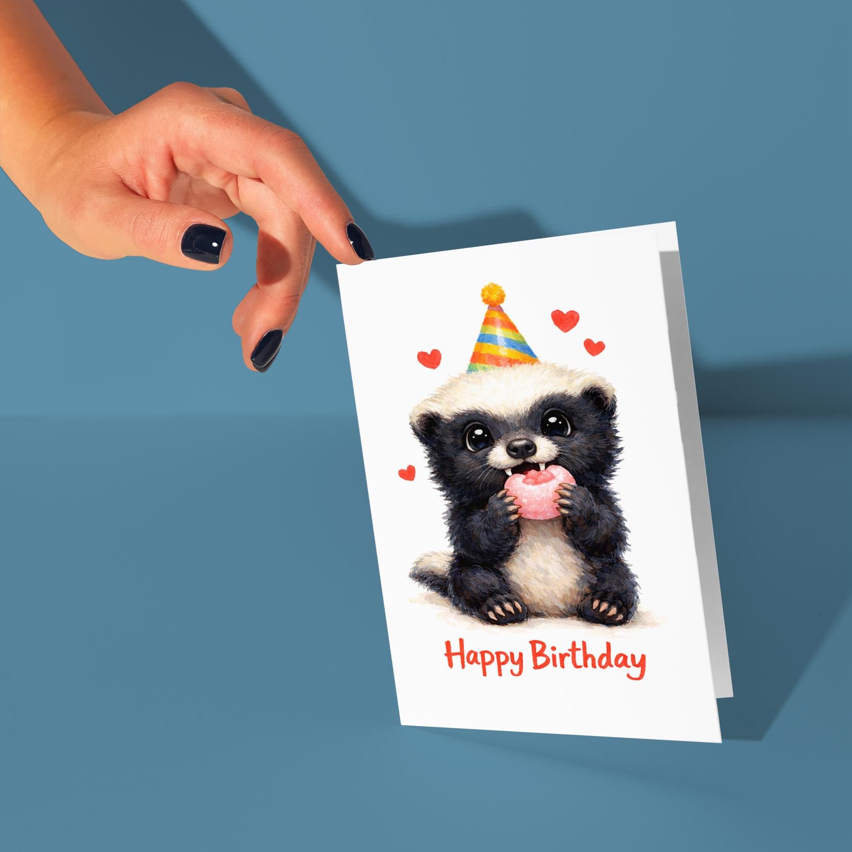BLANK INTERIOR FOR A PERSONAL TOUCH: Our Kawaii Art Series - Honey Badger with Mochi Happy Birthday! card and other whimsical designs feature a blank interior, giving you ample space to write a personal message from the heart. Perfect for any occasion, each card comes with a matching white envelope, making it easy to send your unique sentiments to loved ones.