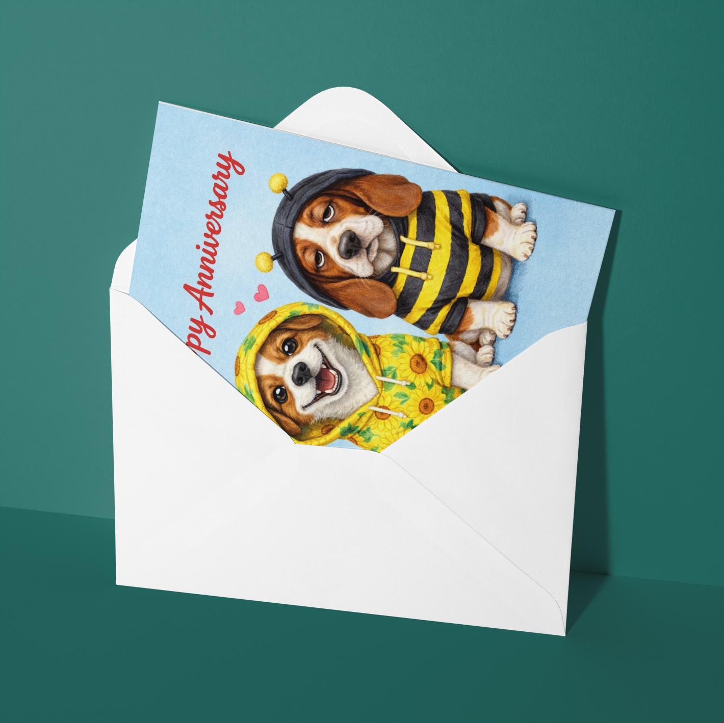 BLANK INTERIOR FOR A PERSONAL TOUCH: Our Dog Breeds Collection - Jack Russell Terrier and Basset Hound Dogs Bee and Sunflower Hoodie, Cute Personalised Dog Lover Gift - Happy Birthday Card and other whimsical designs feature a blank interior, giving you ample space to write a personal message from the heart. Perfect for any occasion, each card comes with a matching white envelope, making it easy to send your unique sentiments to loved ones.