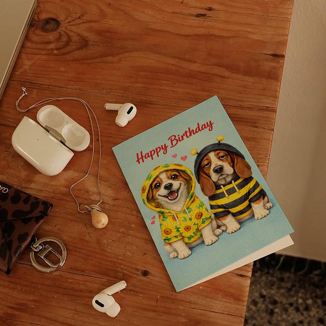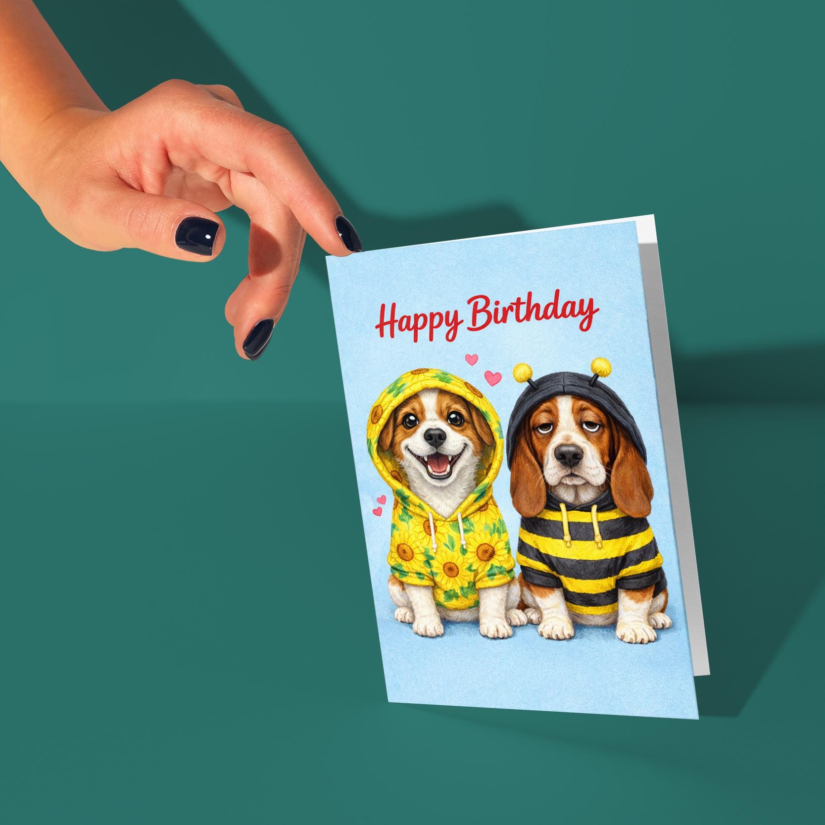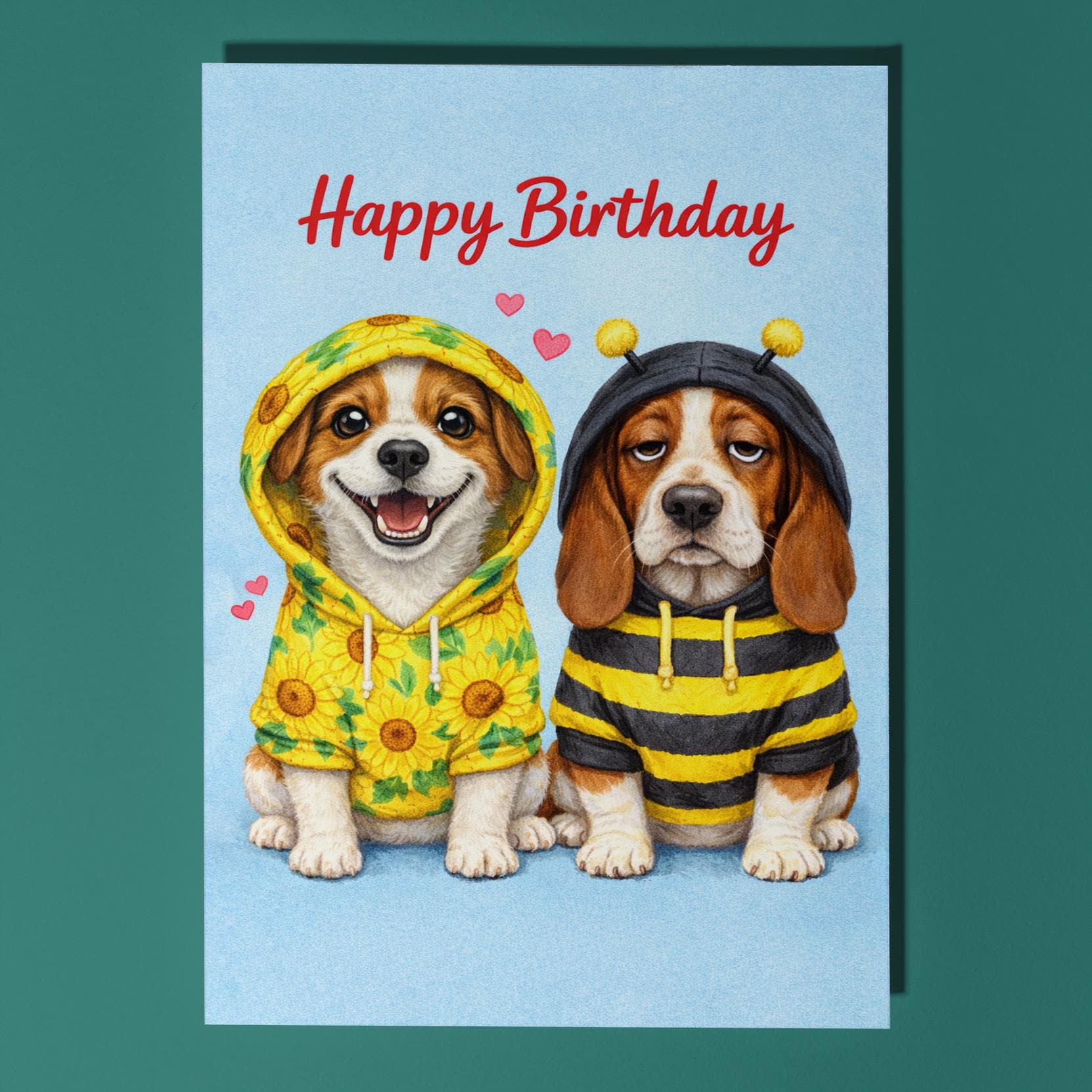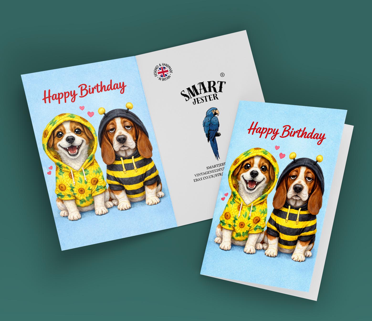 Jack Russell Terrier Basset Hound Dog Birthday Card, Bee Hoodie Sunflower Hoodie, Cute Personalised Dog Lover Gift