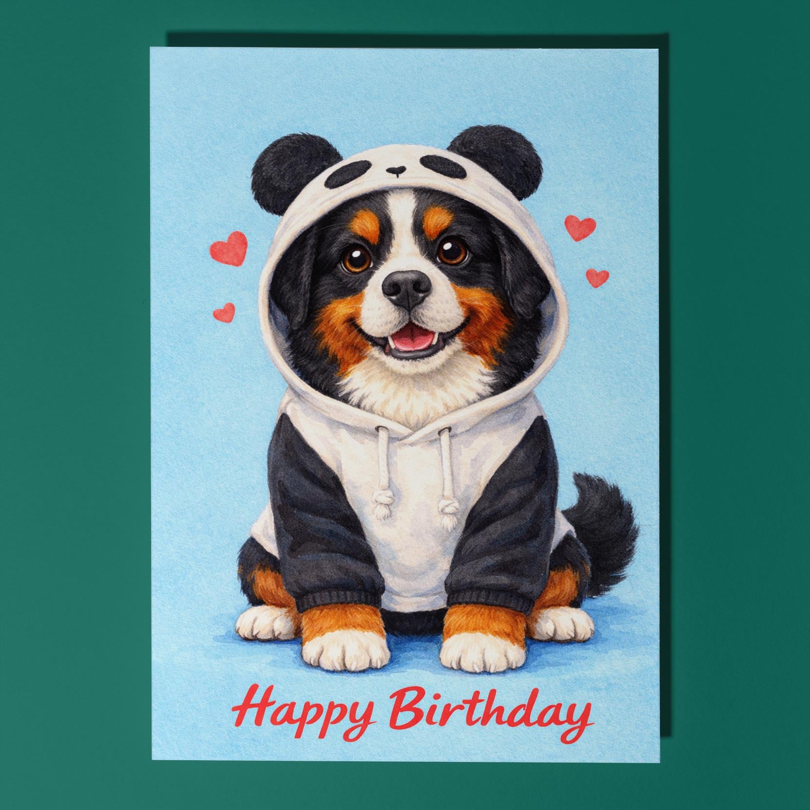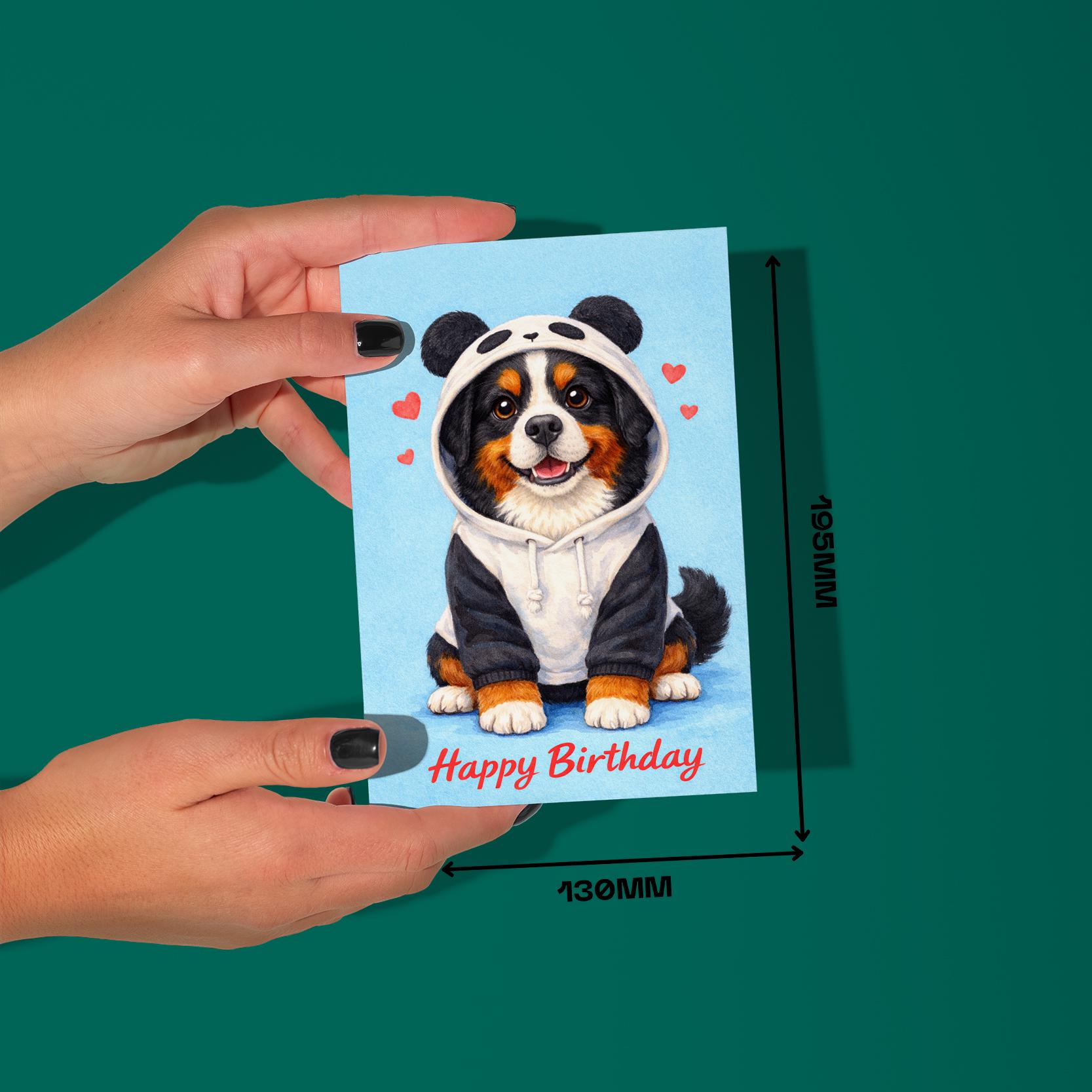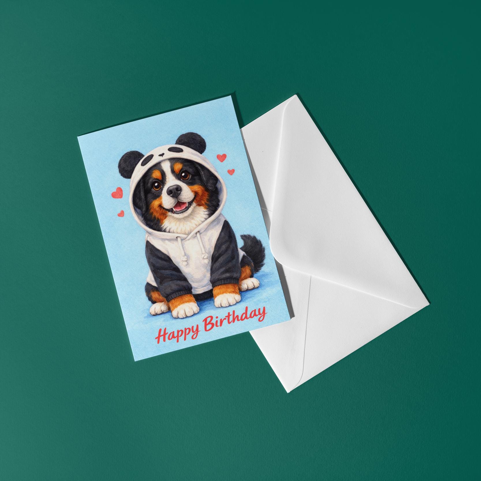BLANK INTERIOR FOR A PERSONAL TOUCH: Our Dog Breeds Collection - Bernese Mountain Dog in Panda Hoodie Kawaii art - Happy Birthday! card and other whimsical designs feature a blank interior, giving you ample space to write a personal message from the heart. Perfect for any occasion, each card comes with a matching white envelope, making it easy to send your unique sentiments to loved ones.