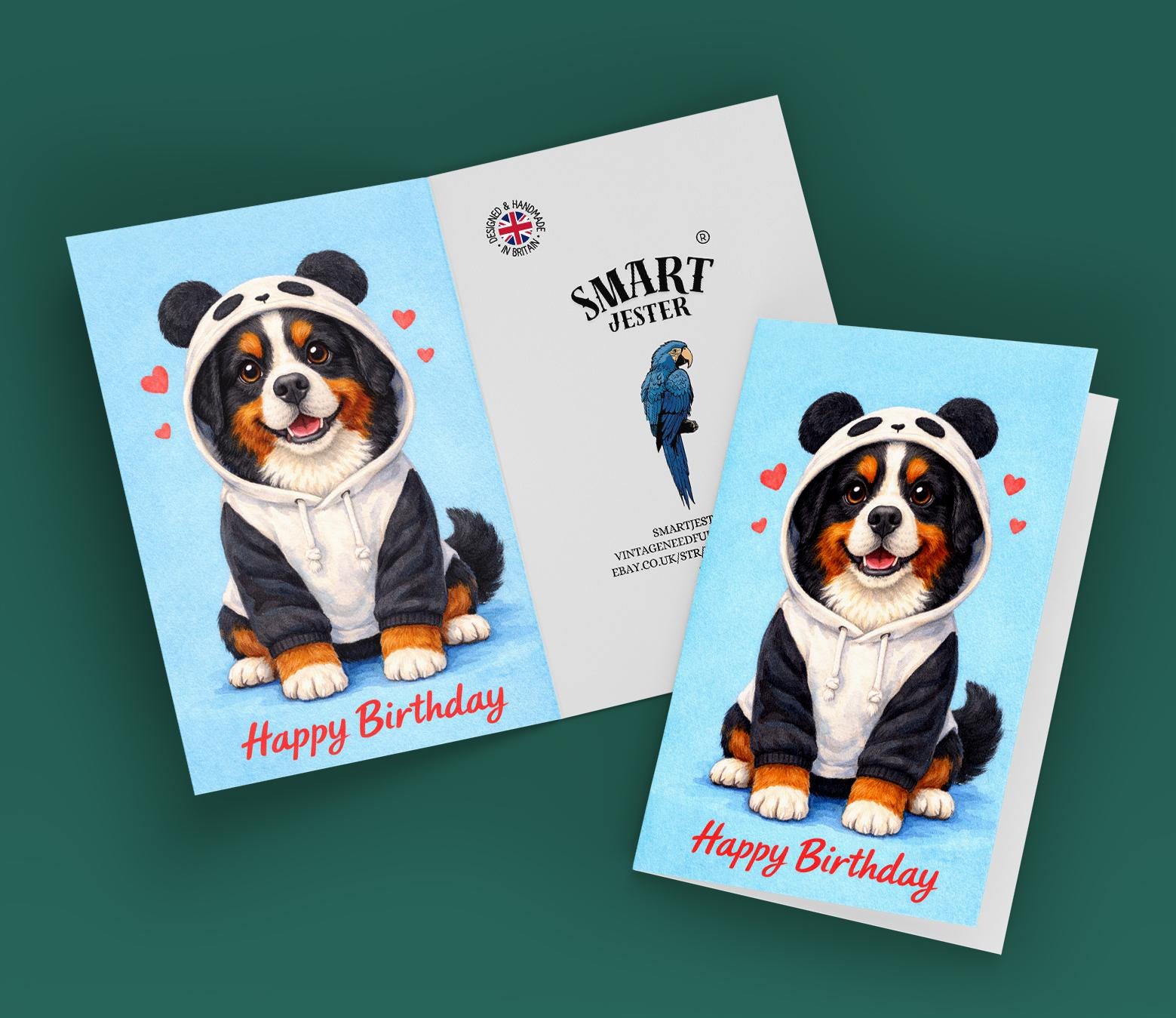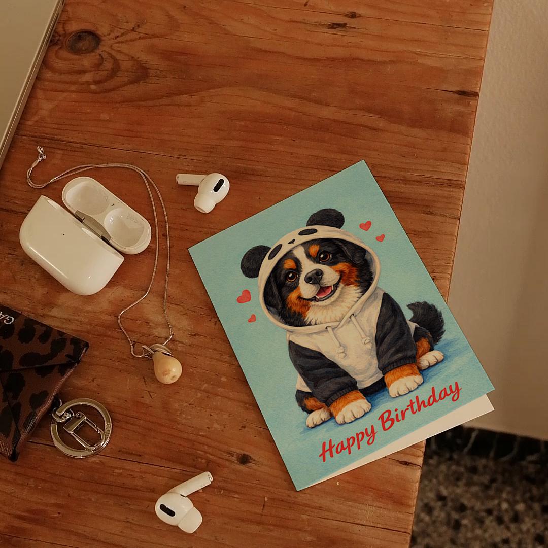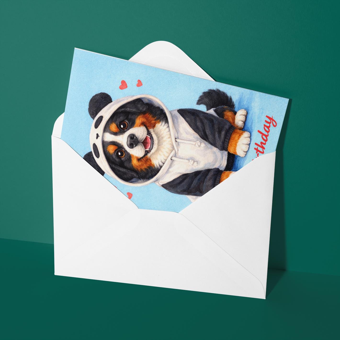 BLANK INTERIOR FOR A PERSONAL TOUCH: Our Dog Breeds Collection - Bernese Mountain Dog in Panda Hoodie Kawaii art - Happy Birthday! card and other whimsical designs feature a blank interior, giving you ample space to write a personal message from the heart. Perfect for any occasion, each card comes with a matching white envelope, making it easy to send your unique sentiments to loved ones.