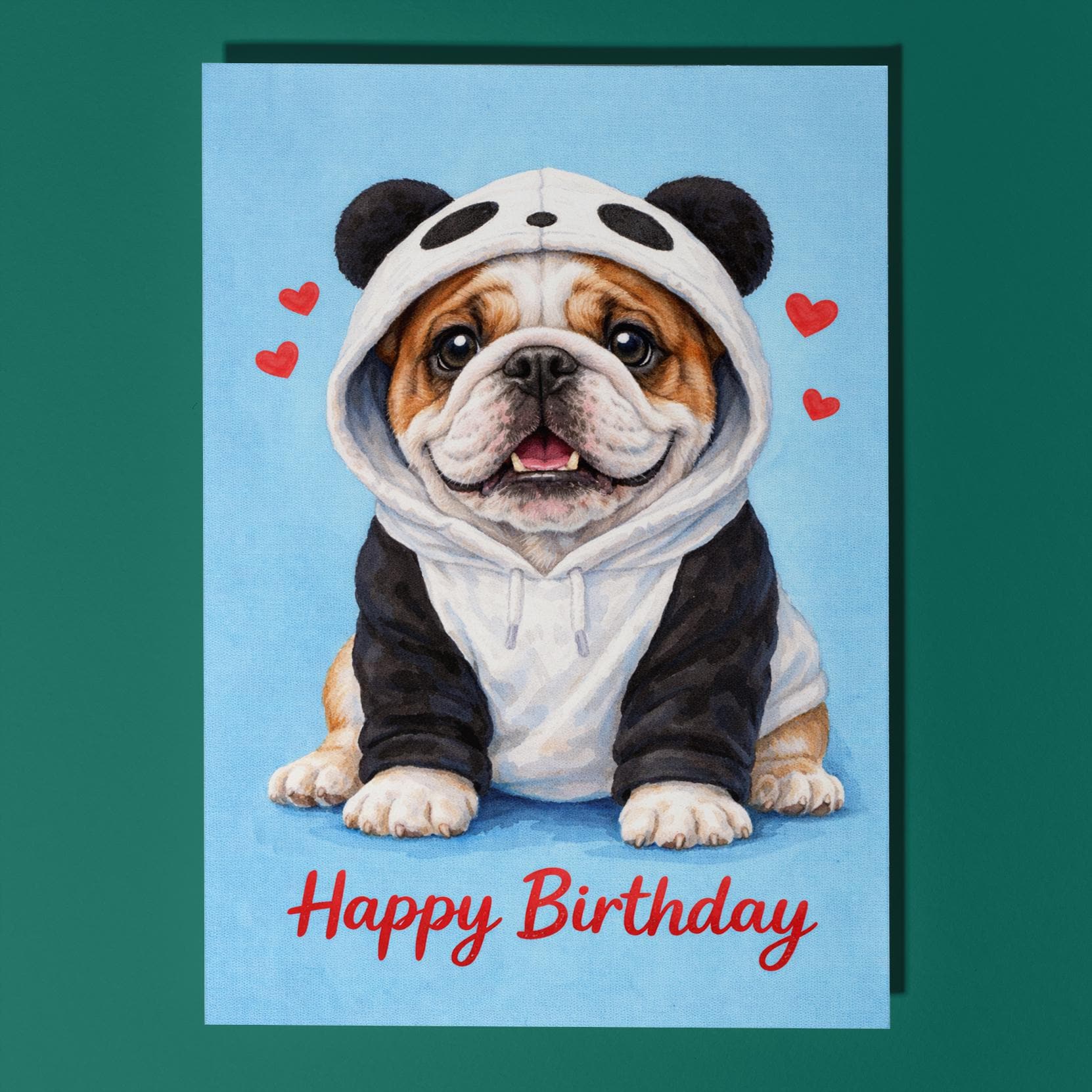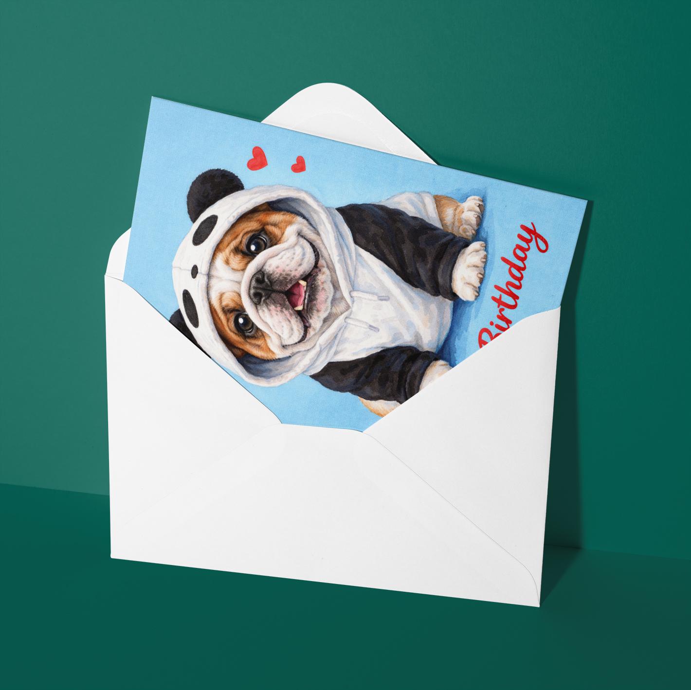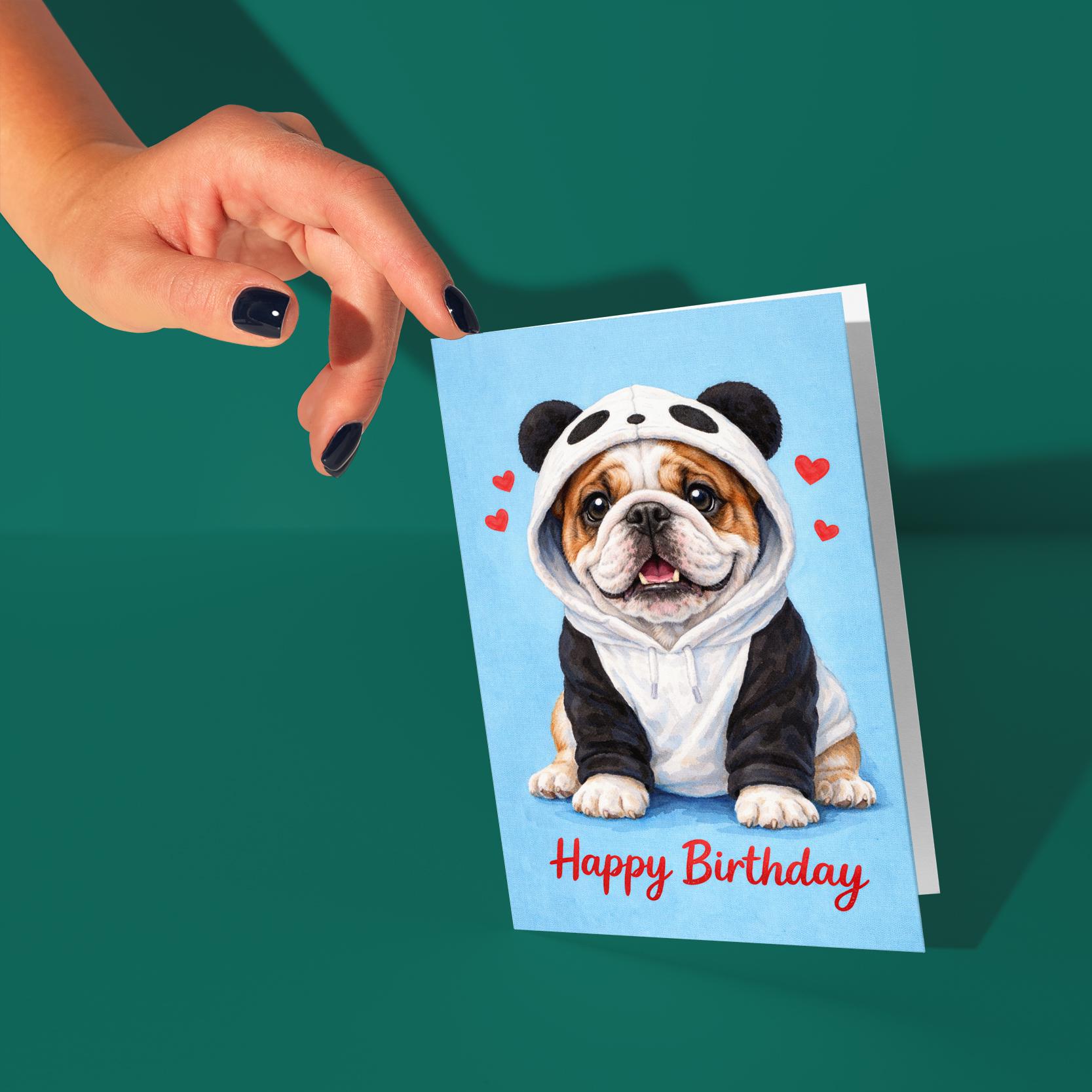 BLANK INTERIOR FOR A PERSONAL TOUCH: Our Dog Breeds Collection - English Bulldog Dog in Panda Hoodie Kawaii art - Happy Birthday! card and other whimsical designs feature a blank interior, giving you ample space to write a personal message from the heart. Perfect for any occasion, each card comes with a matching white envelope, making it easy to send your unique sentiments to loved ones.