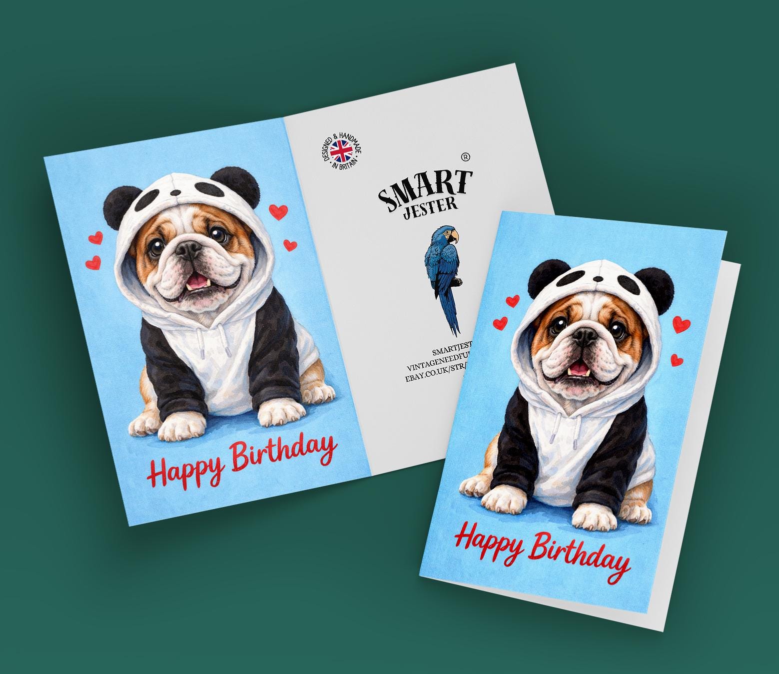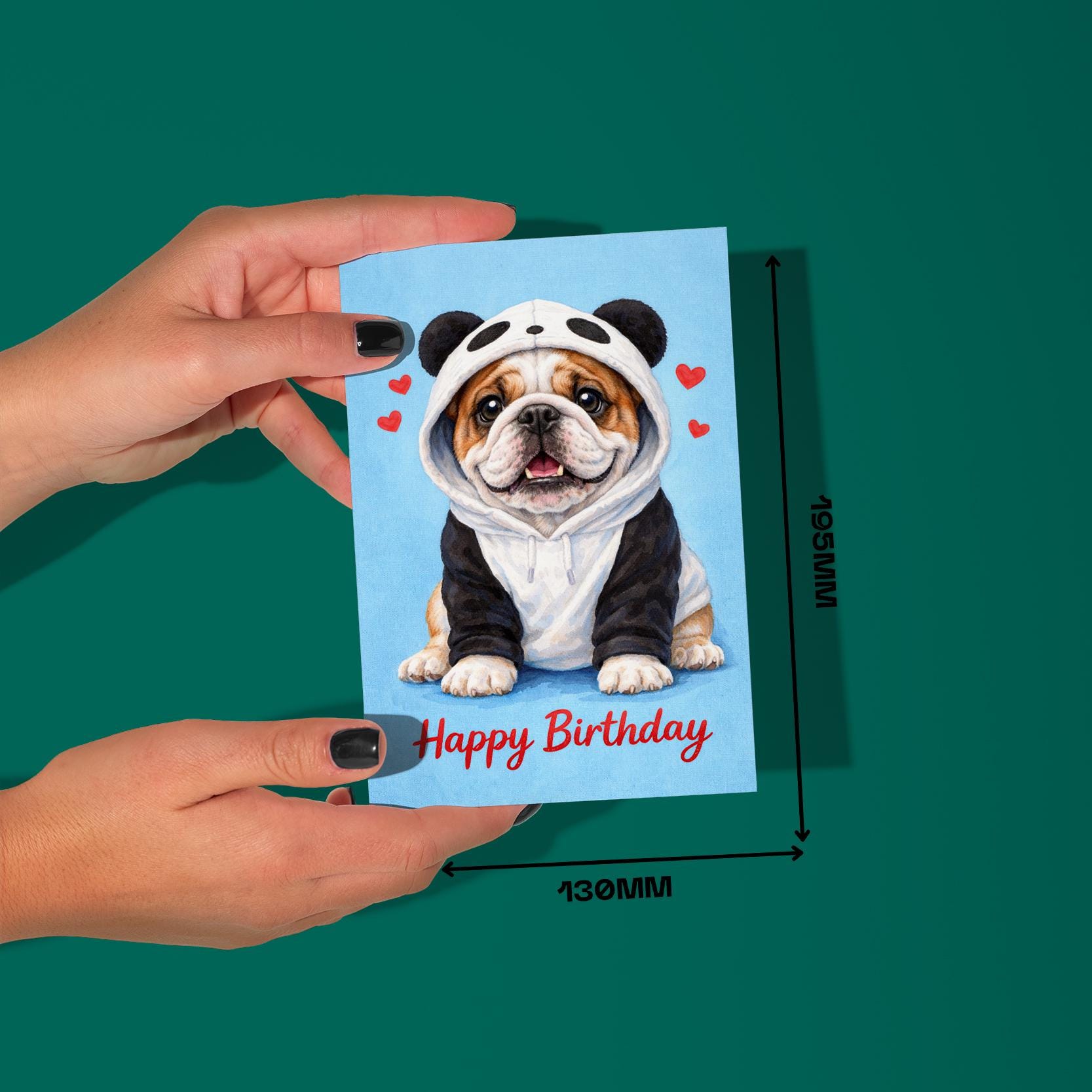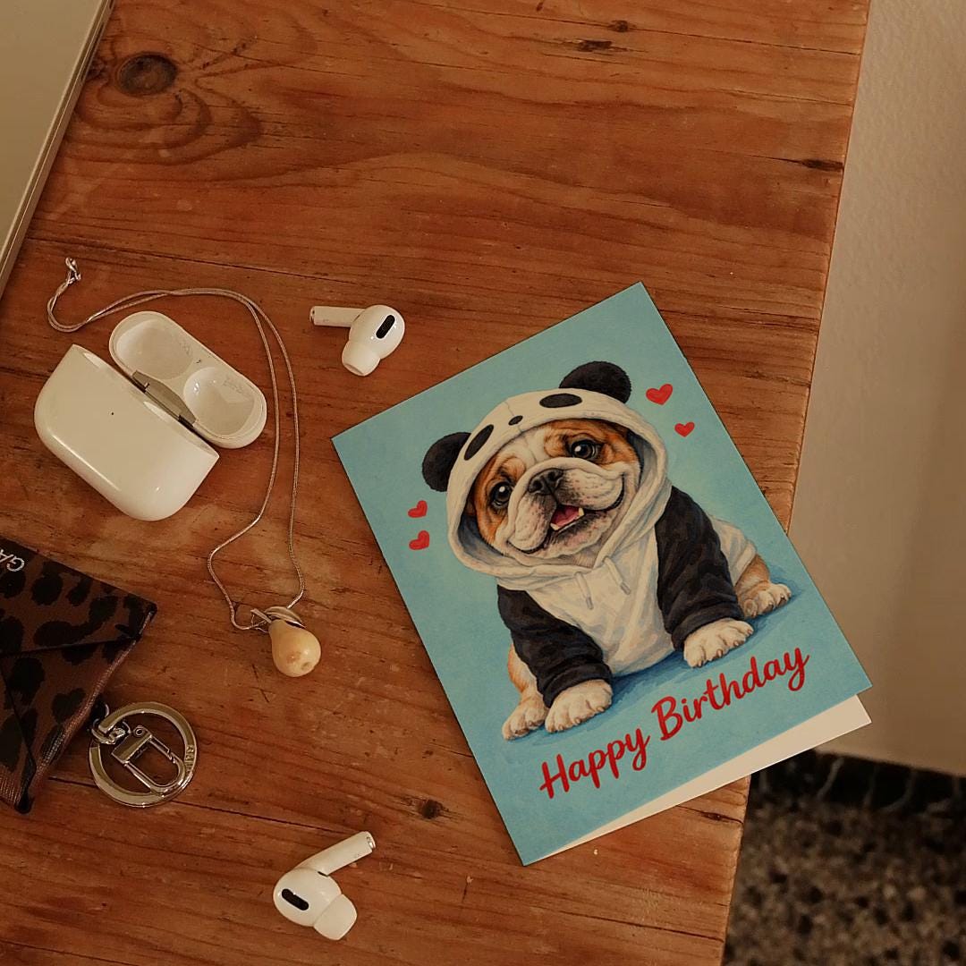 BLANK INTERIOR FOR A PERSONAL TOUCH: Our Dog Breeds Collection - English Bulldog Dog in Panda Hoodie Kawaii art - Happy Birthday! card and other whimsical designs feature a blank interior, giving you ample space to write a personal message from the heart. Perfect for any occasion, each card comes with a matching white envelope, making it easy to send your unique sentiments to loved ones.