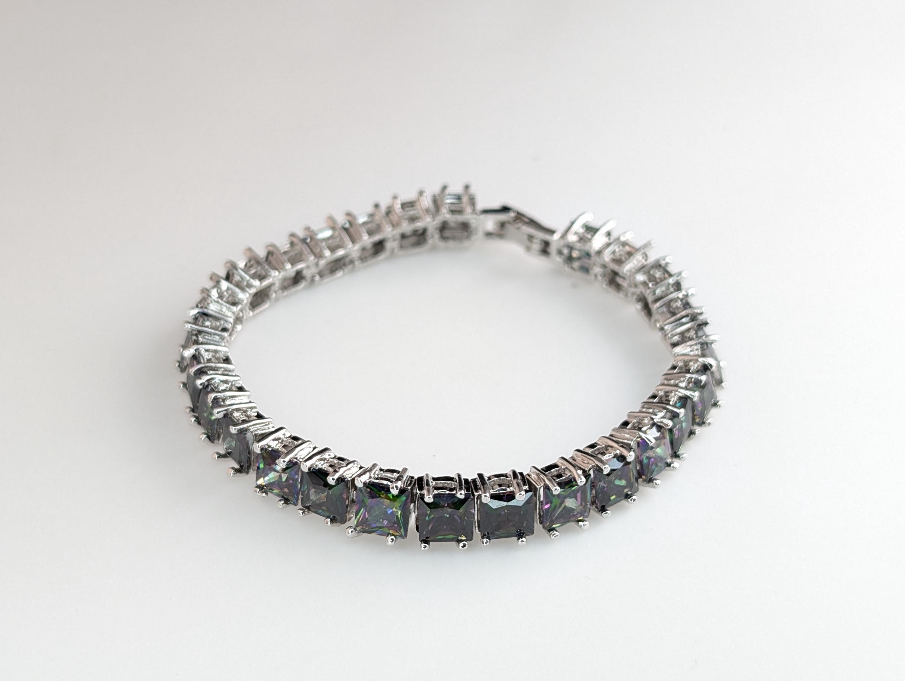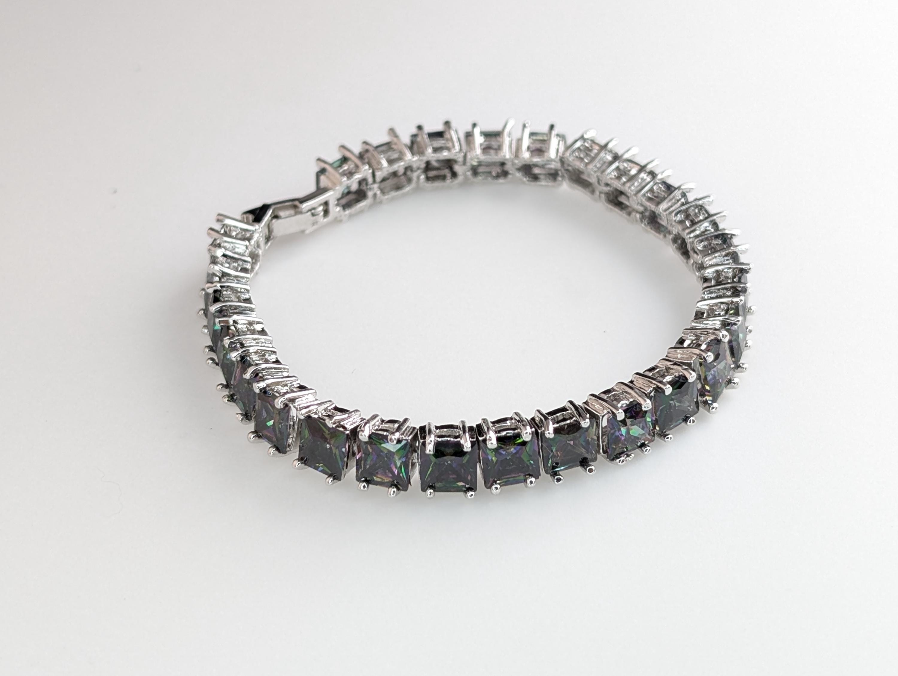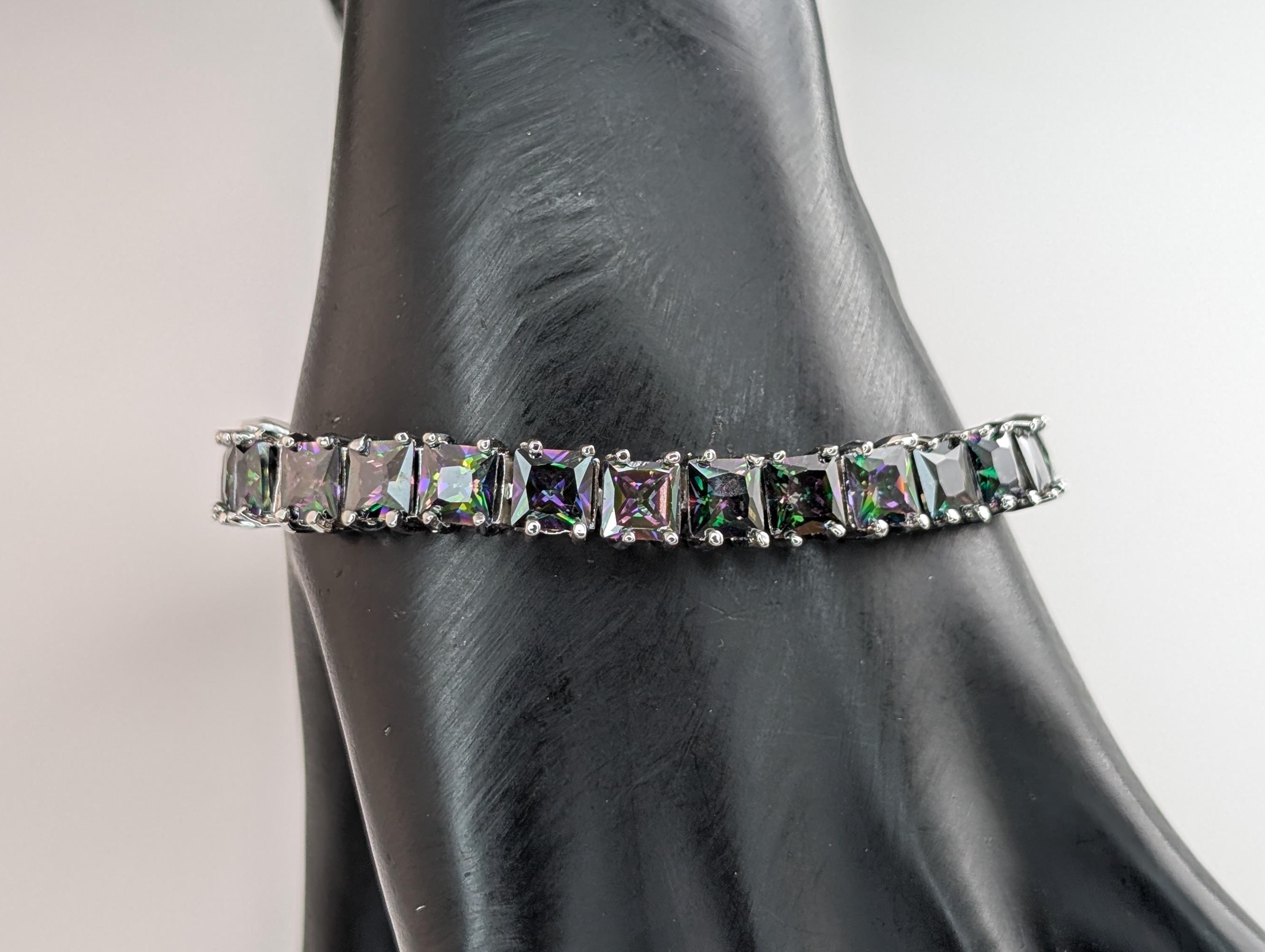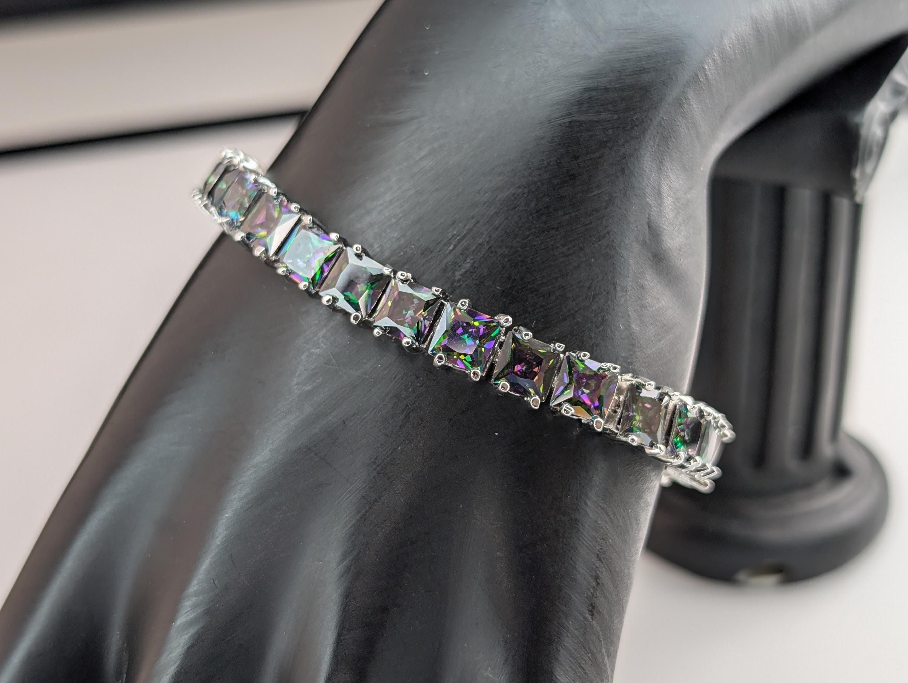 Step into a world of luxury with the "Enchanted Elegance" Mystic Green and White Topaz Bracelet. Featuring a stunning silver tone, this radiant bracelet sparkles with its vivid green, pink and sparkling white Mystic topaz stones, capturing light from every angle. Measures 7 1/2 inches in length. The secure clasp ensures a perfect fit, while its mesmerizing design elevates any outfit. This bracelet is more than an accessory—it's a statement of timeless sophistication and charm, perfect for women who desire to shine in effortless luxury.