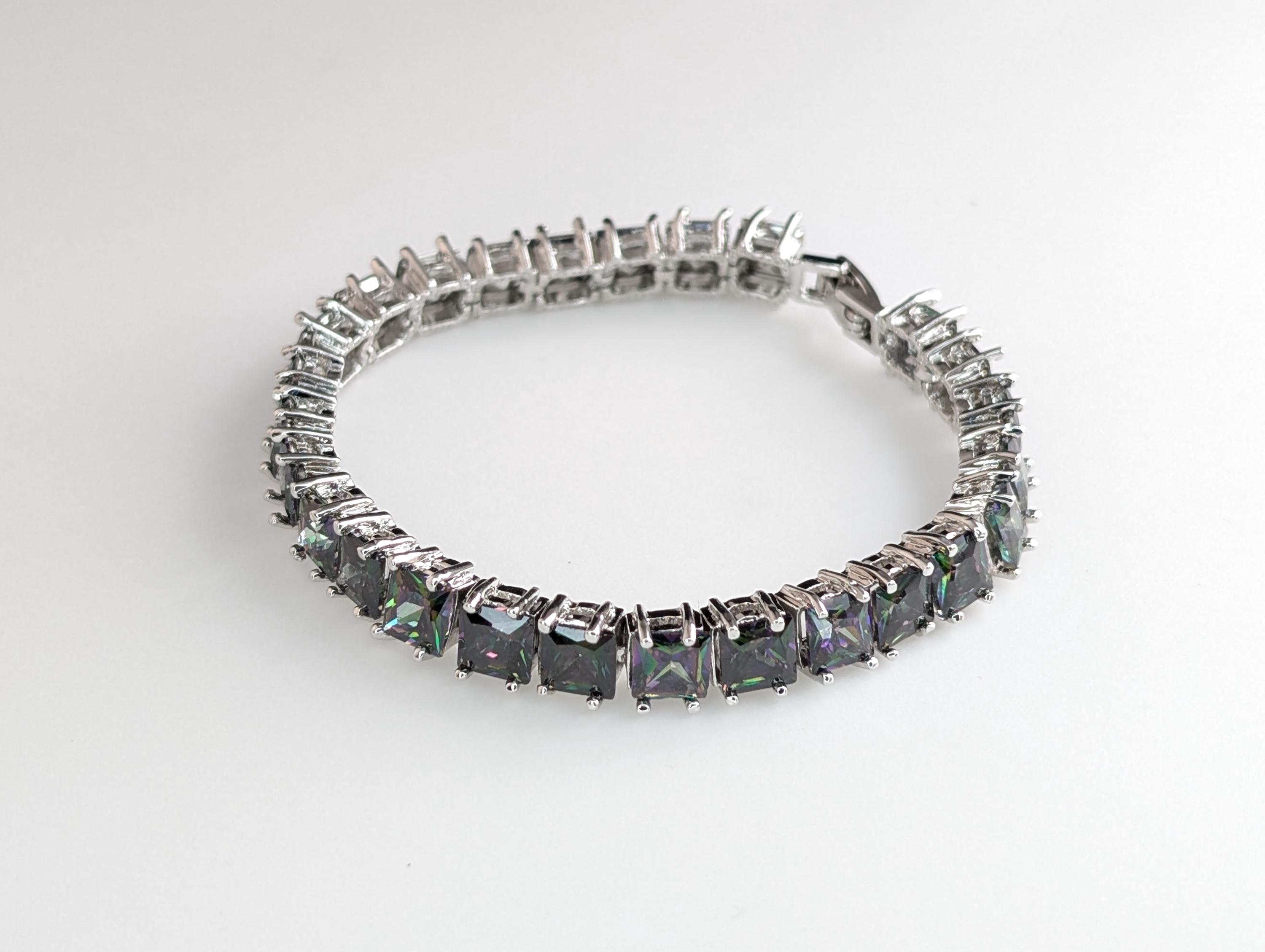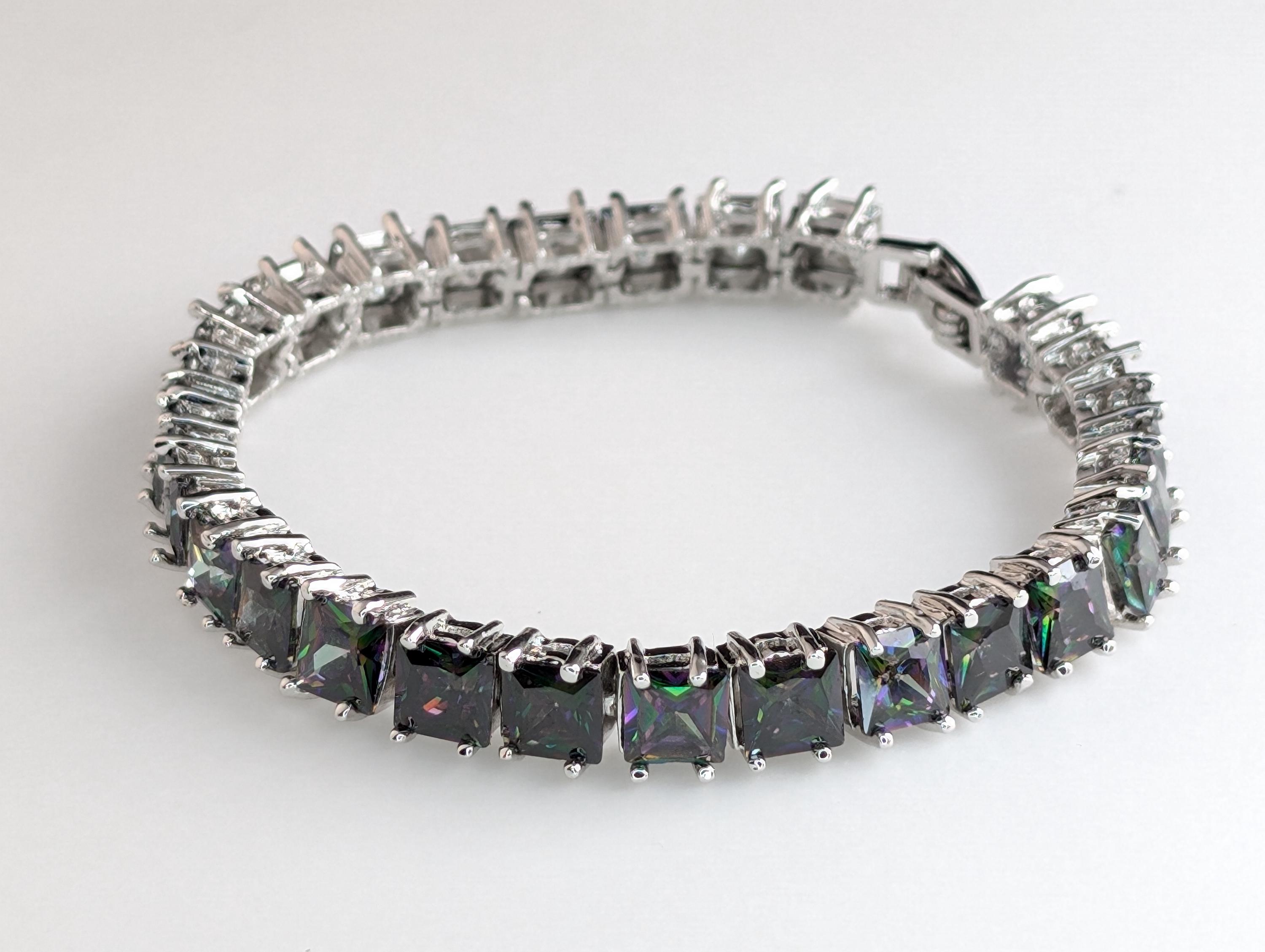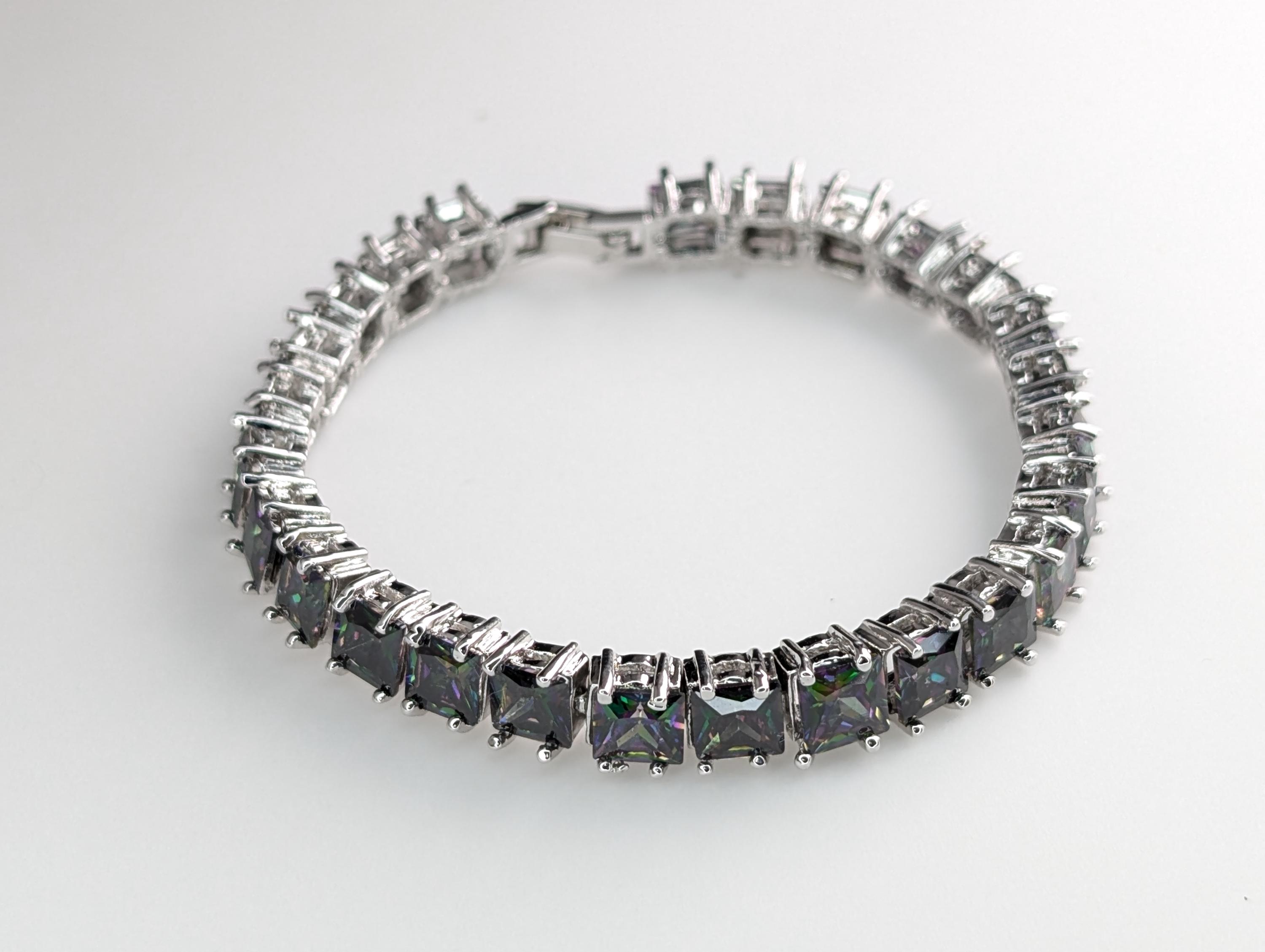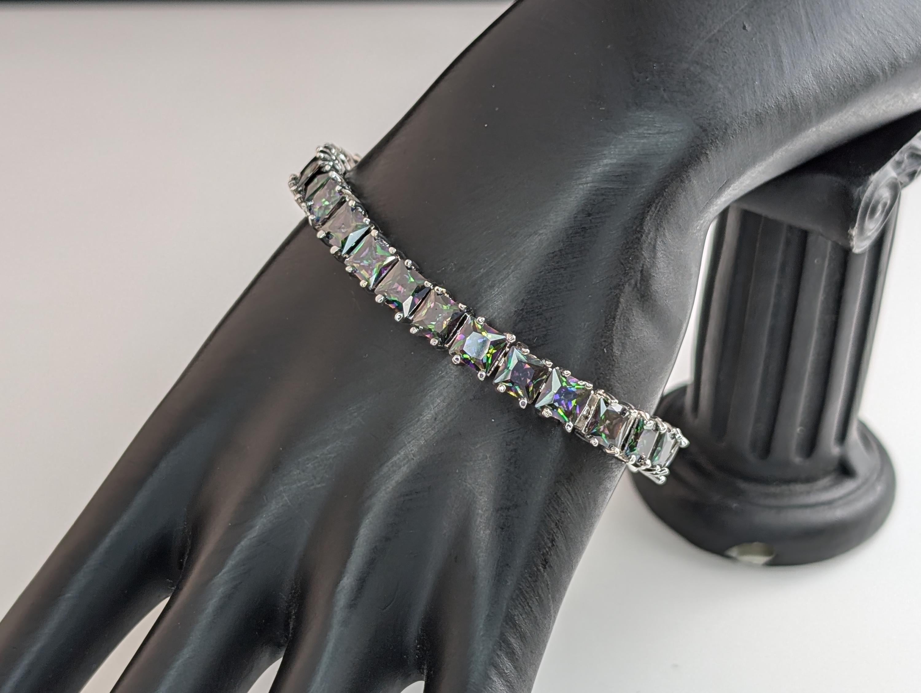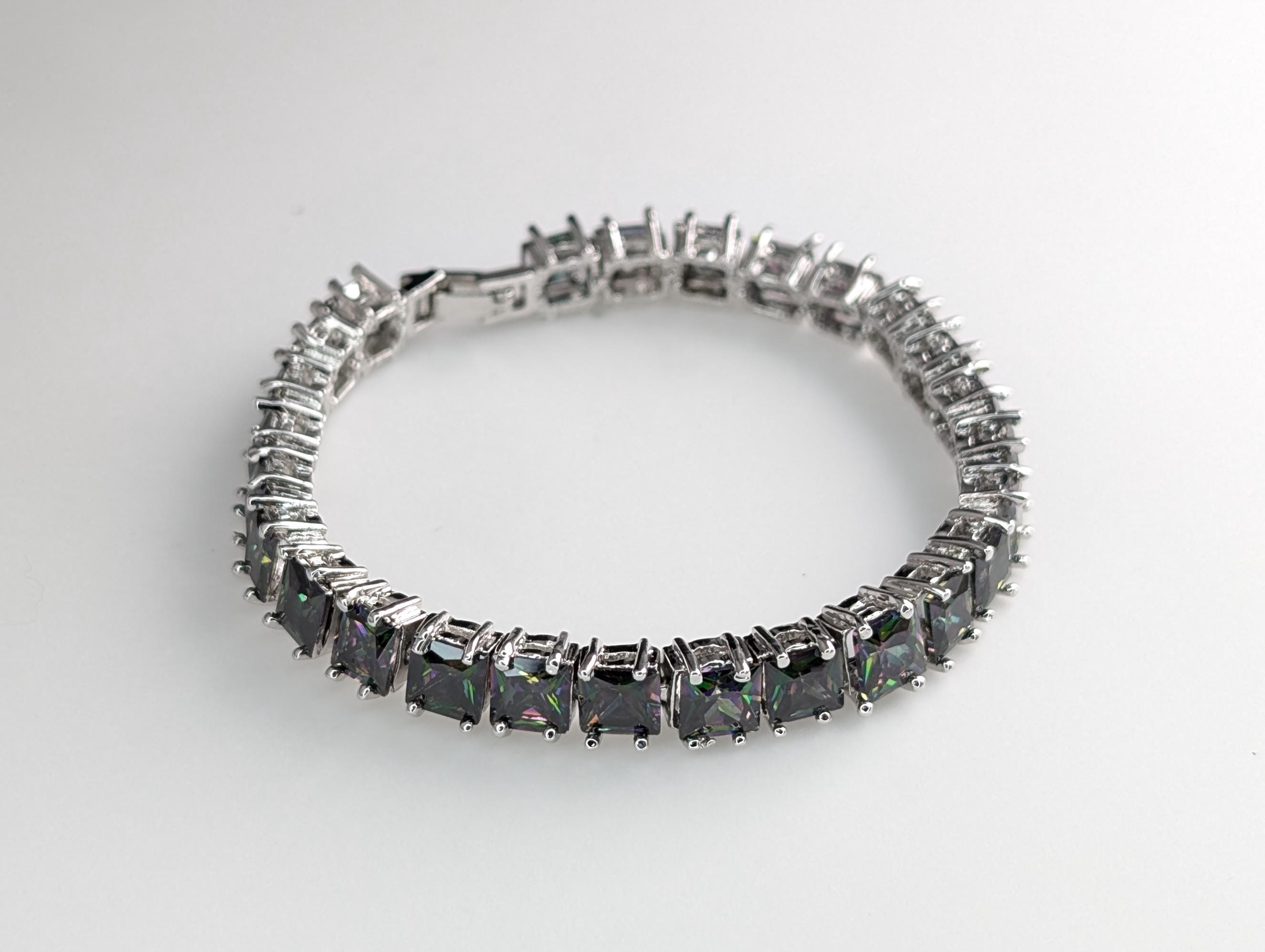 Step into a world of luxury with the "Enchanted Elegance" Mystic Green and White Topaz Bracelet. Featuring a stunning silver tone, this radiant bracelet sparkles with its vivid green, pink and sparkling white Mystic topaz stones, capturing light from every angle. Measures 7 1/2 inches in length. The secure clasp ensures a perfect fit, while its mesmerizing design elevates any outfit. This bracelet is more than an accessory—it's a statement of timeless sophistication and charm, perfect for women who desire to shine in effortless luxury.